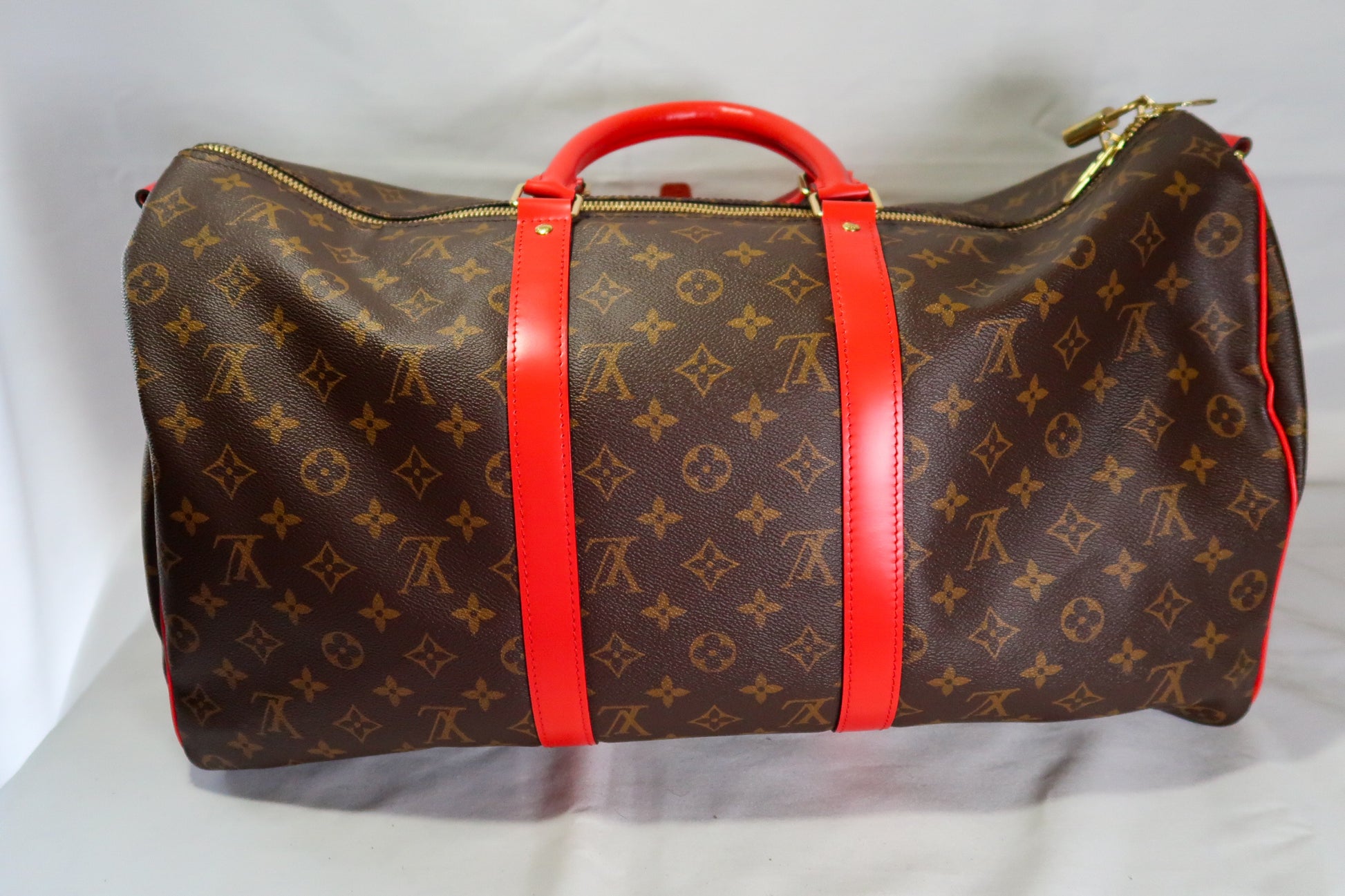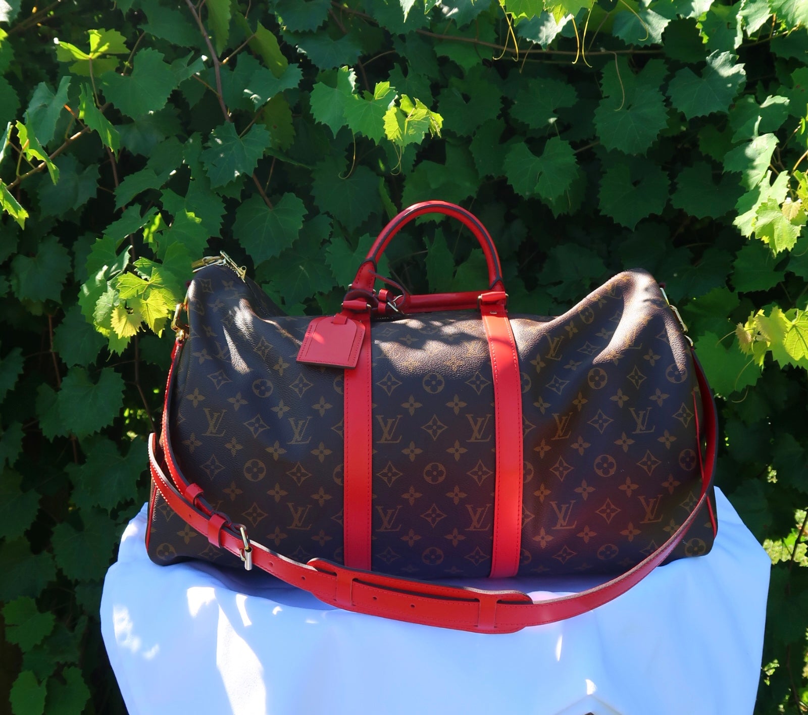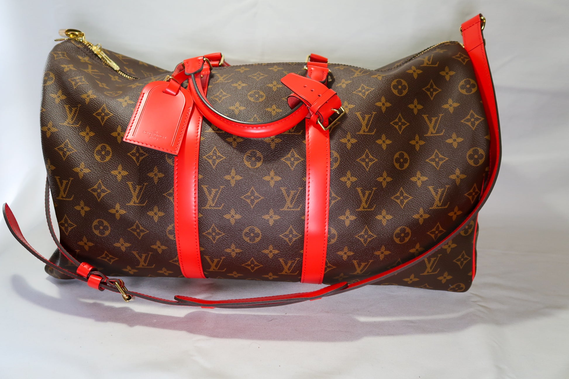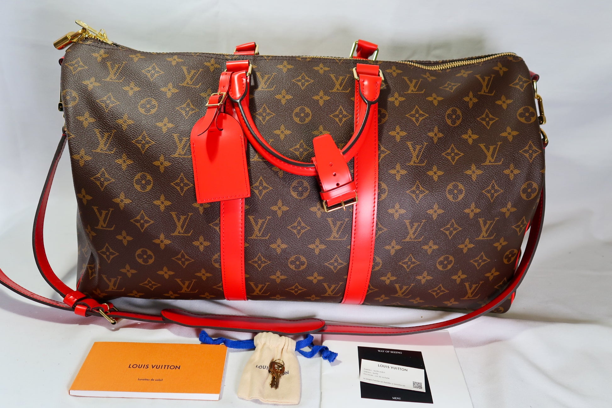 Louis Vuitton Keepall Bandoulière 50 – Monogram Canvas with Red Leather Trim
