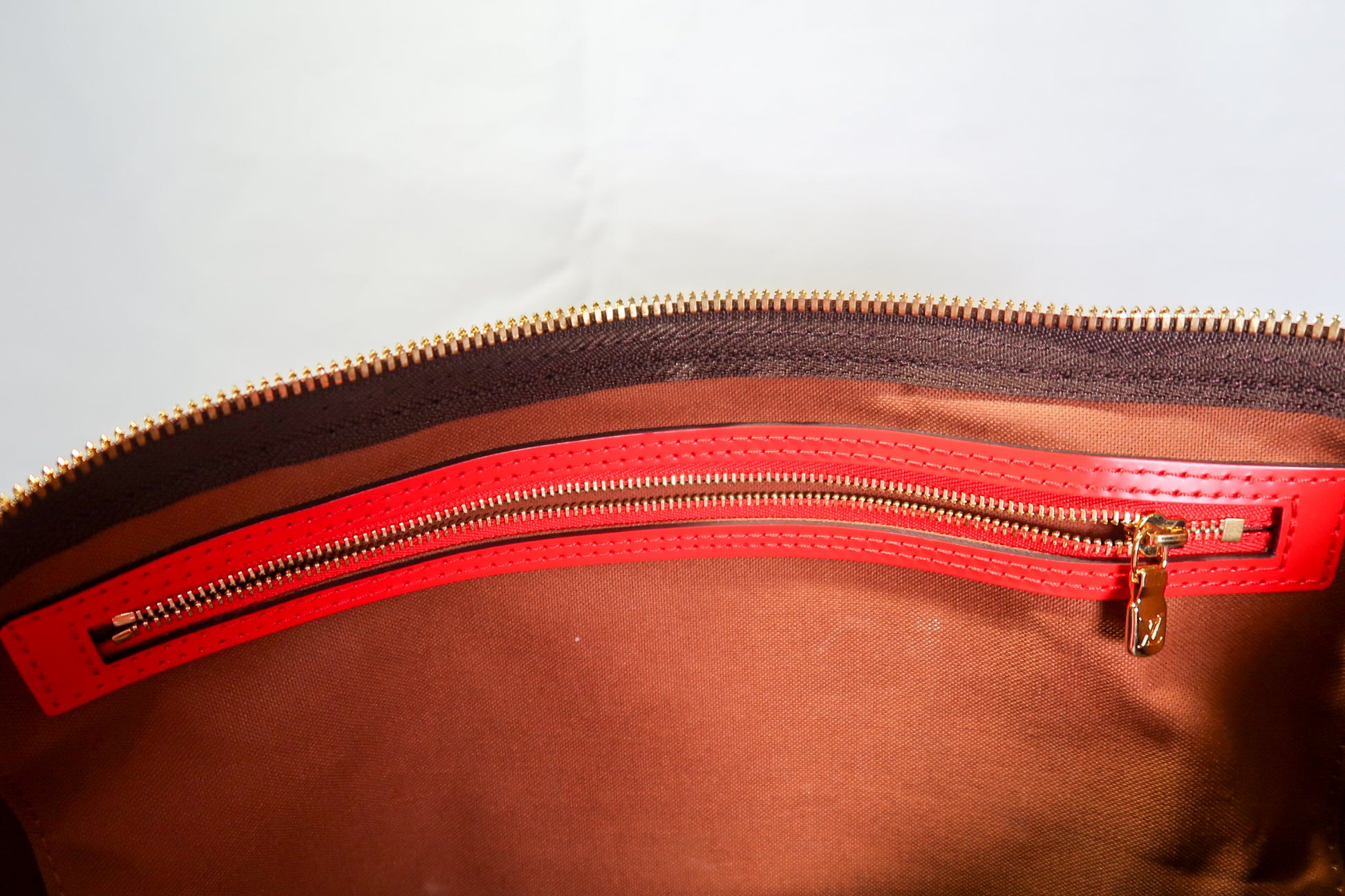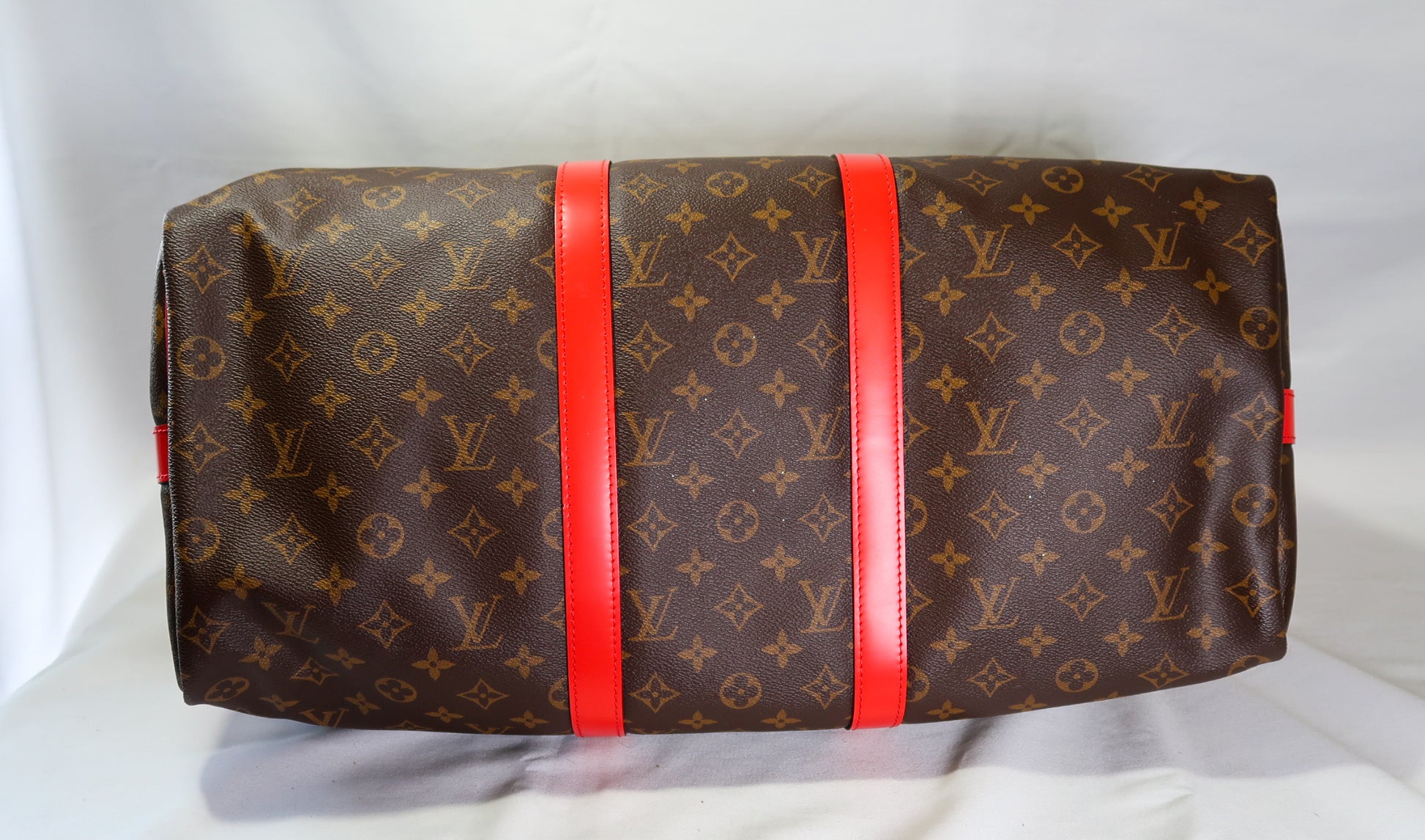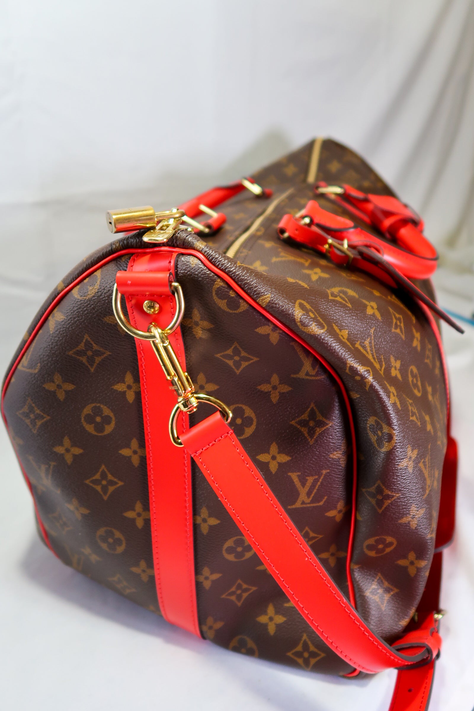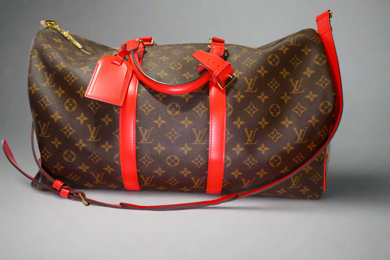 Louis Vuitton Keepall Bandoulière 50 – Monogram Canvas with Red Leather Trim