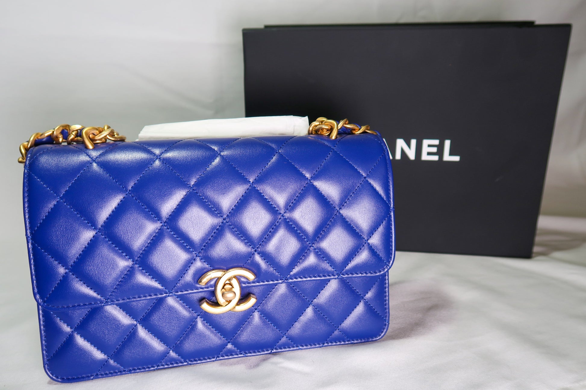 Chanel Classic Flap Bag – Royal Blue Quilted Lambskin with Gold Chain