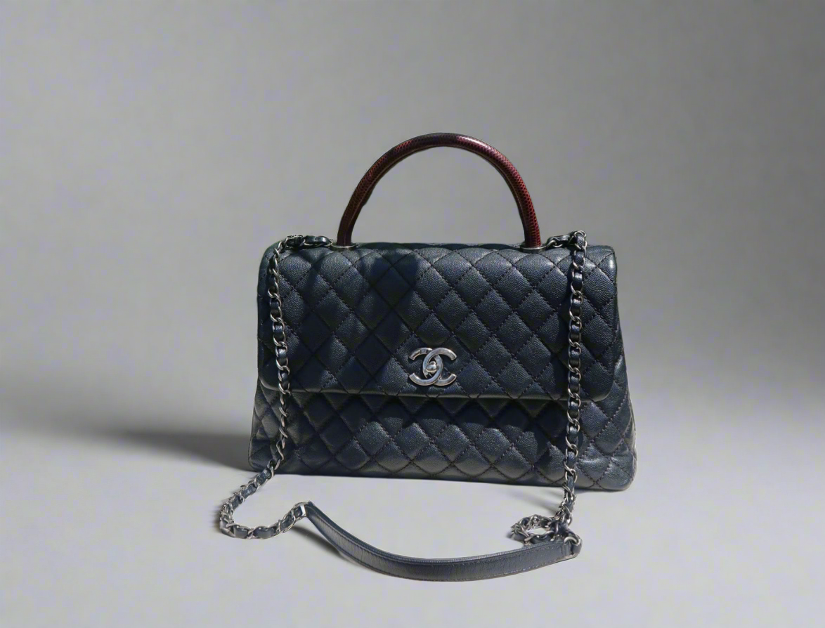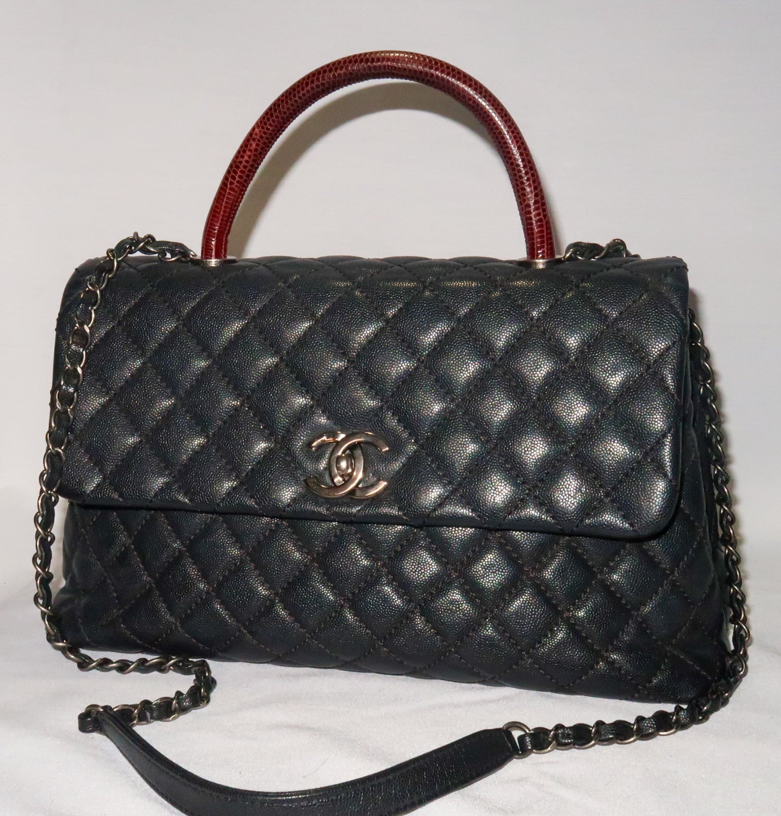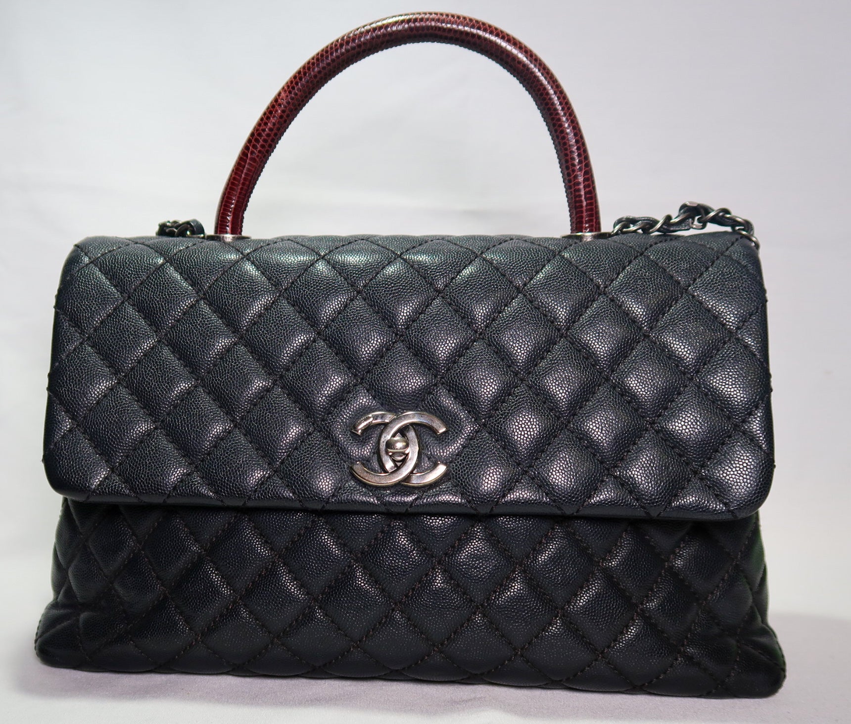 Chanel Caviar Lizard-Trimmed Coco Handle Bag
