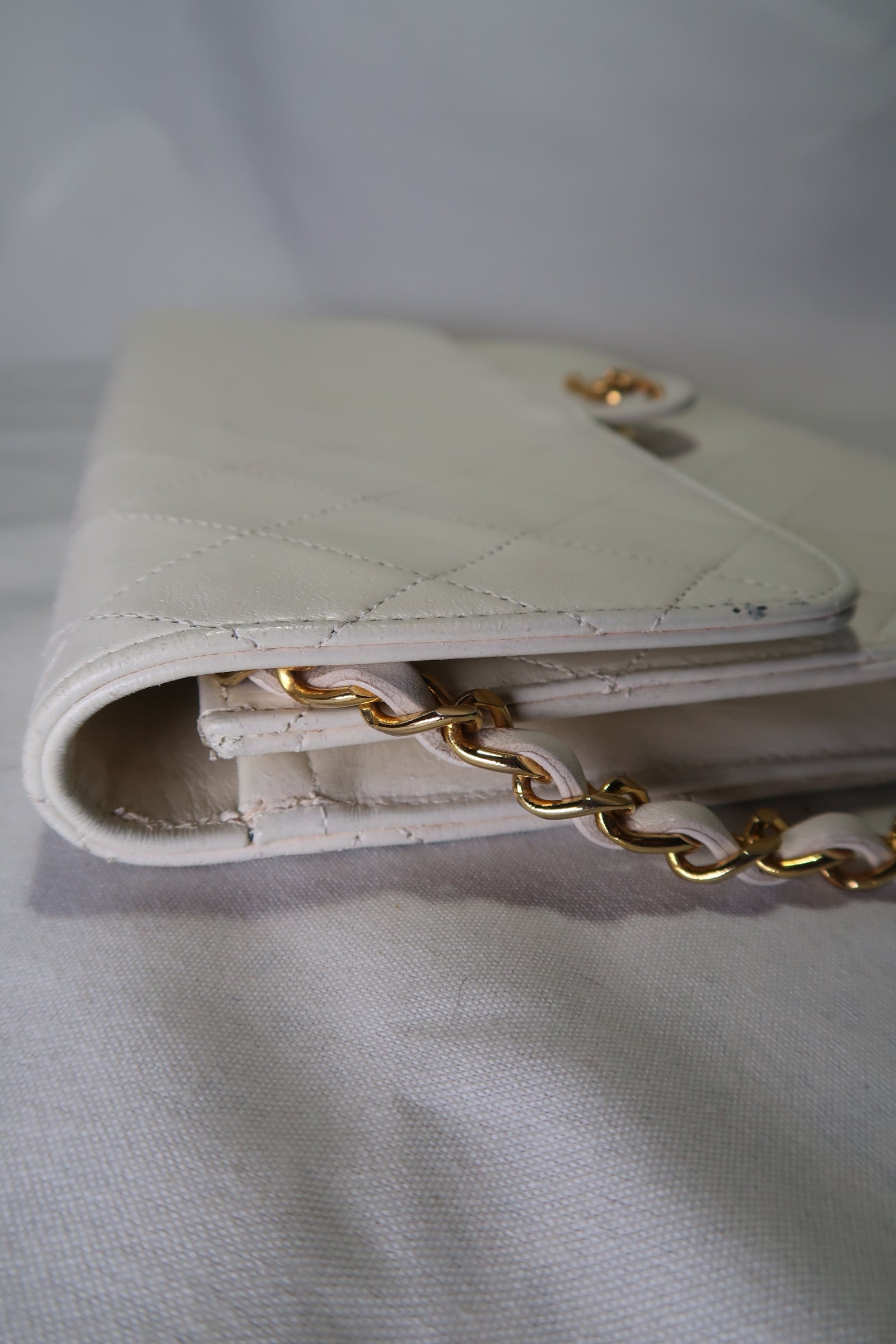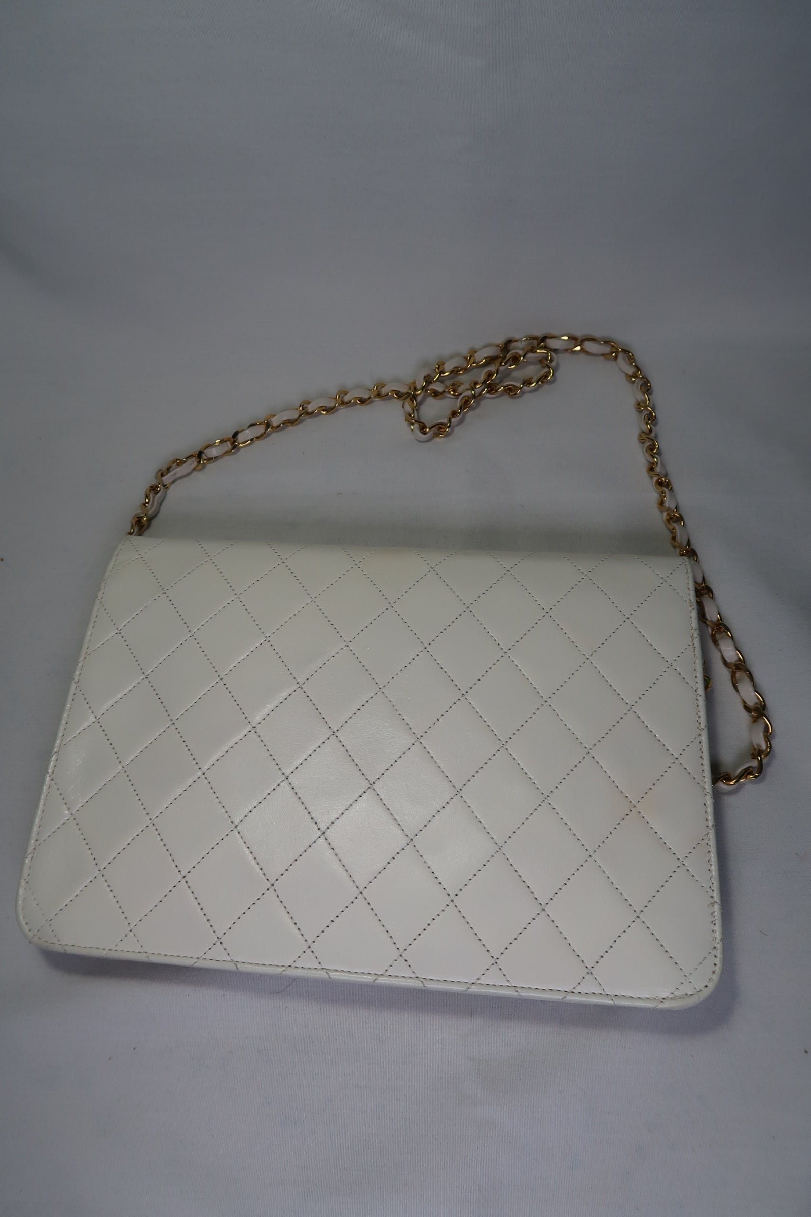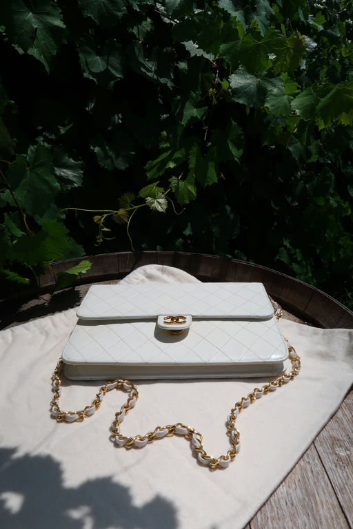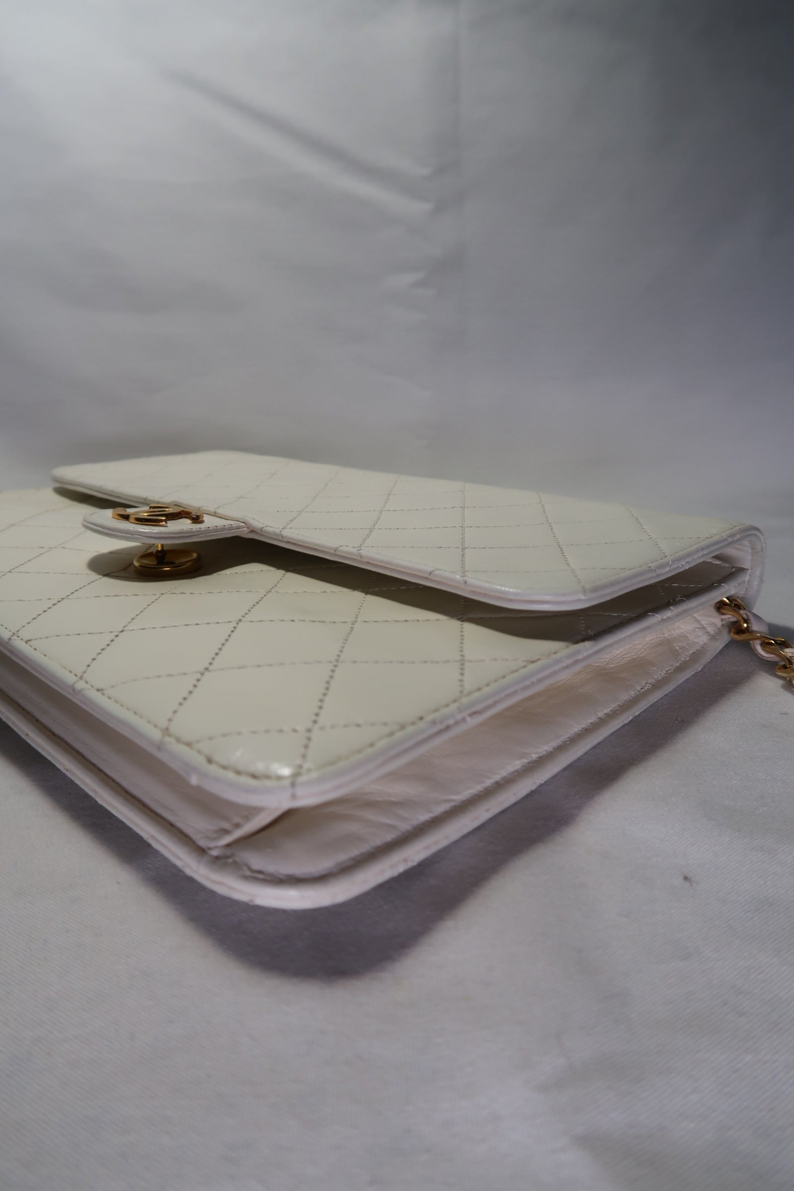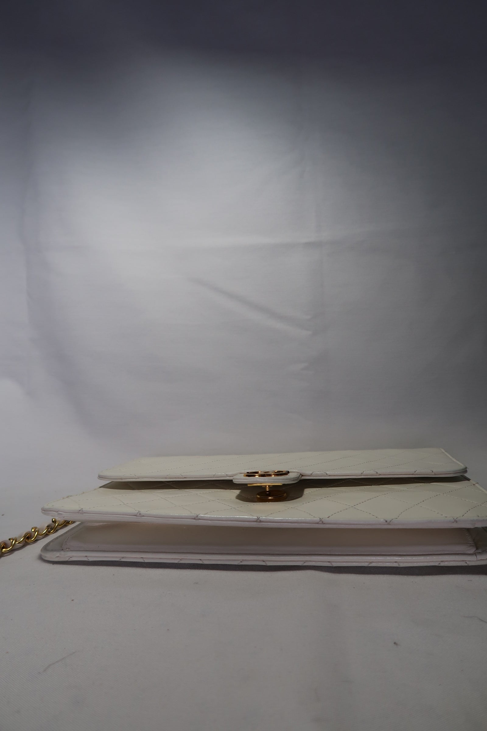 Chanel Quilted Matelasse CC Logo Lambskin Chain Shoulder Bag White / Cream Gold