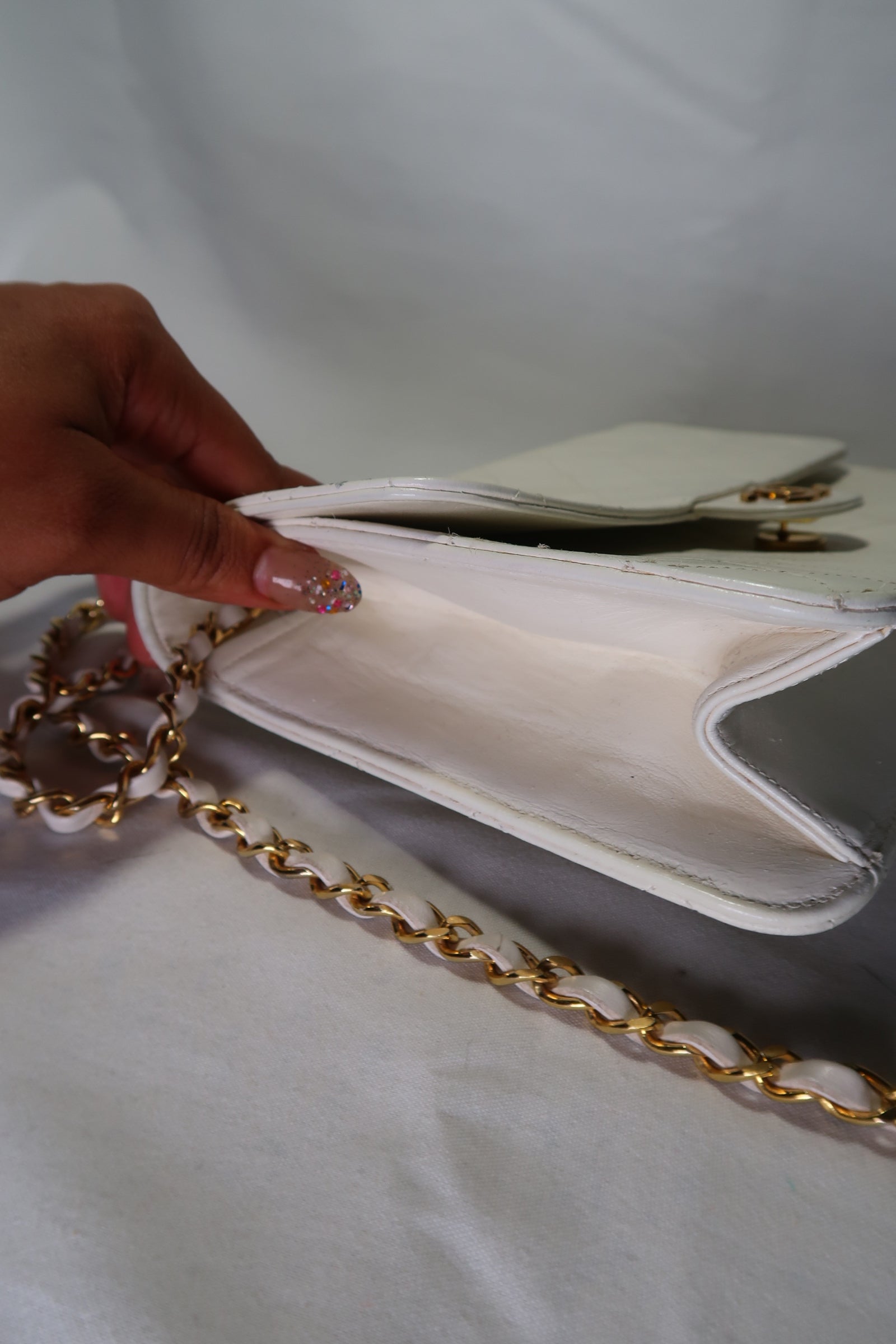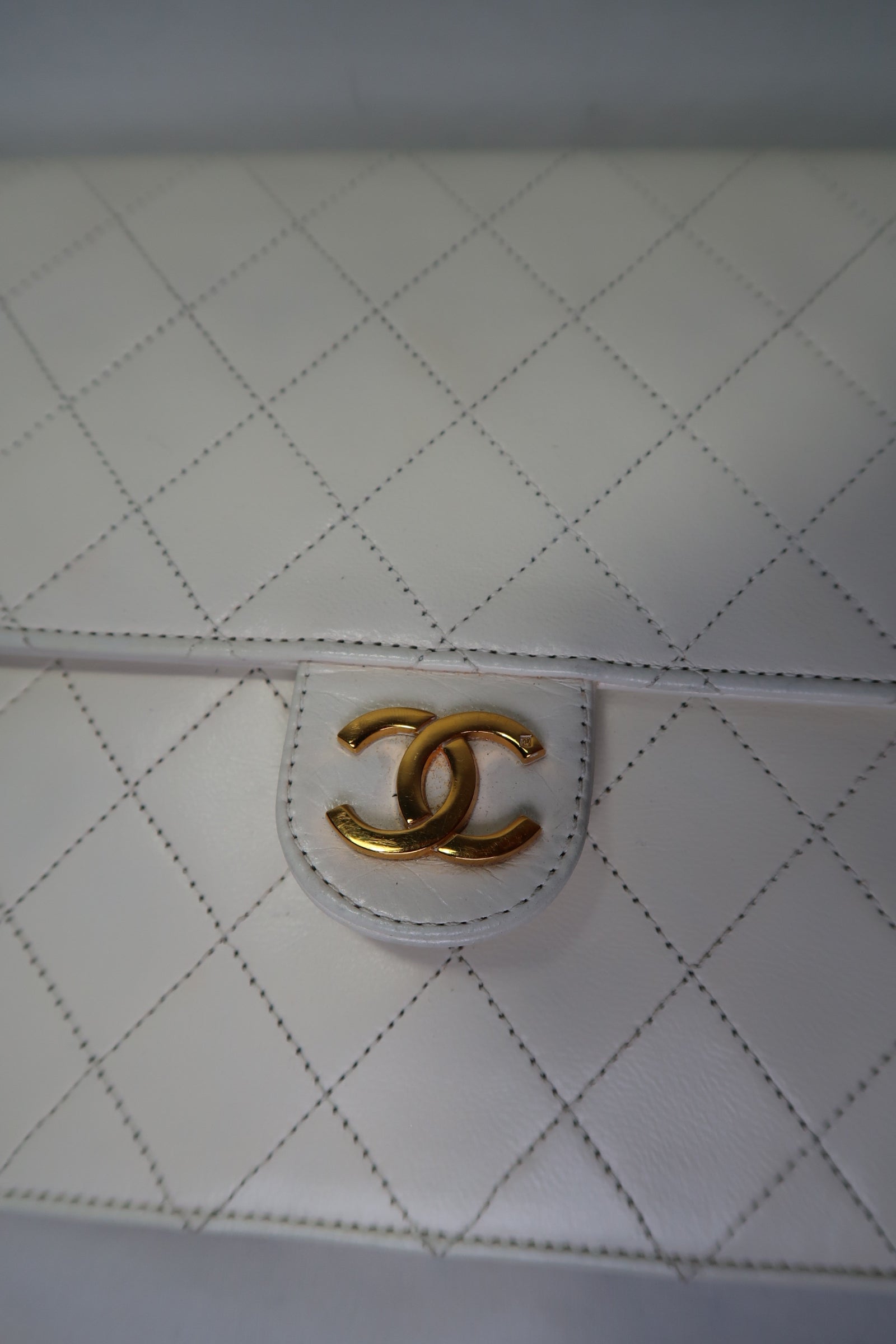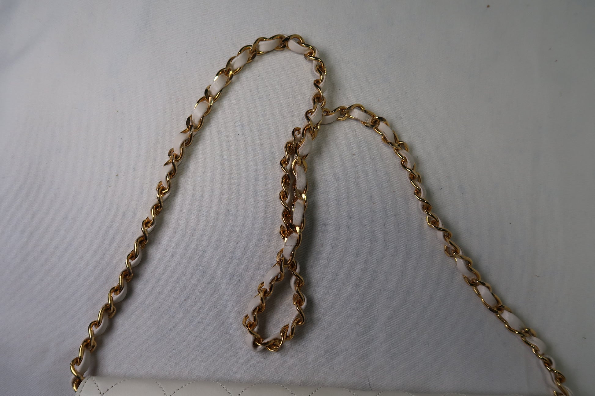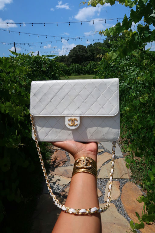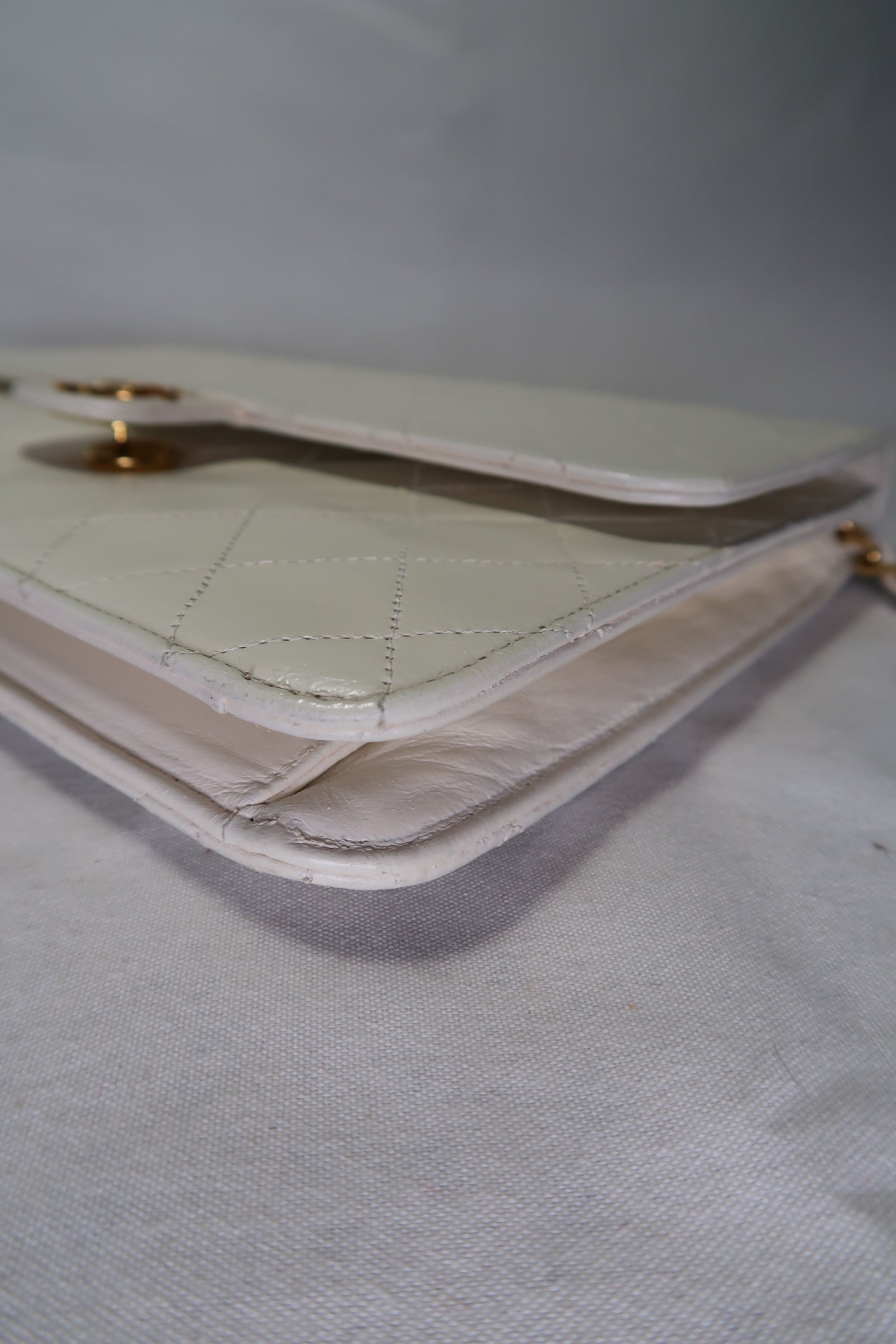 Chanel Quilted Matelasse CC Logo Lambskin Chain Shoulder Bag White / Cream Gold