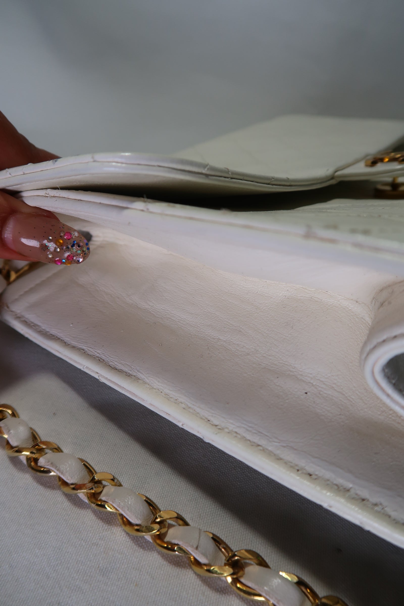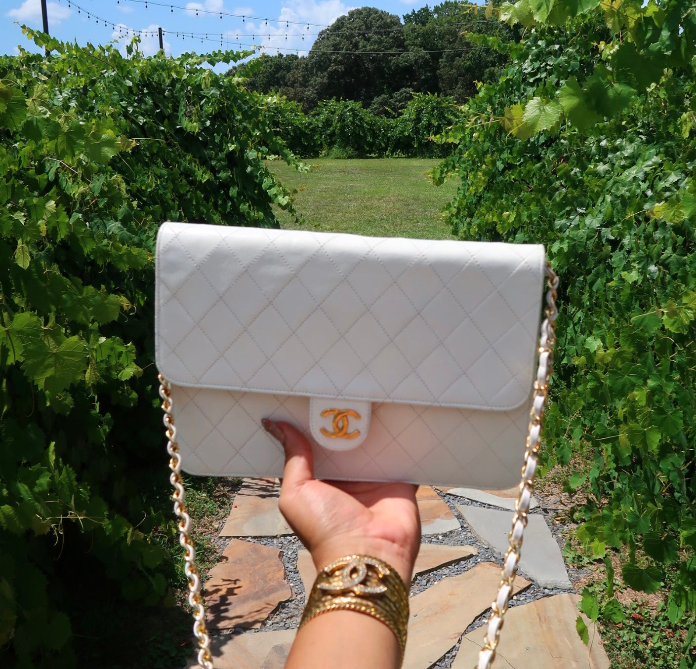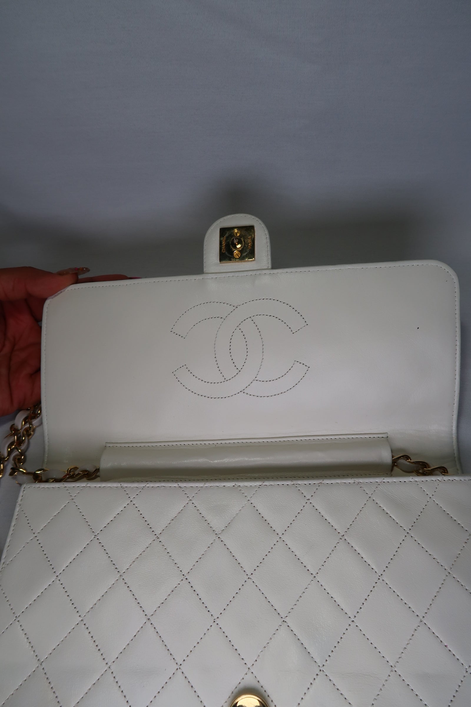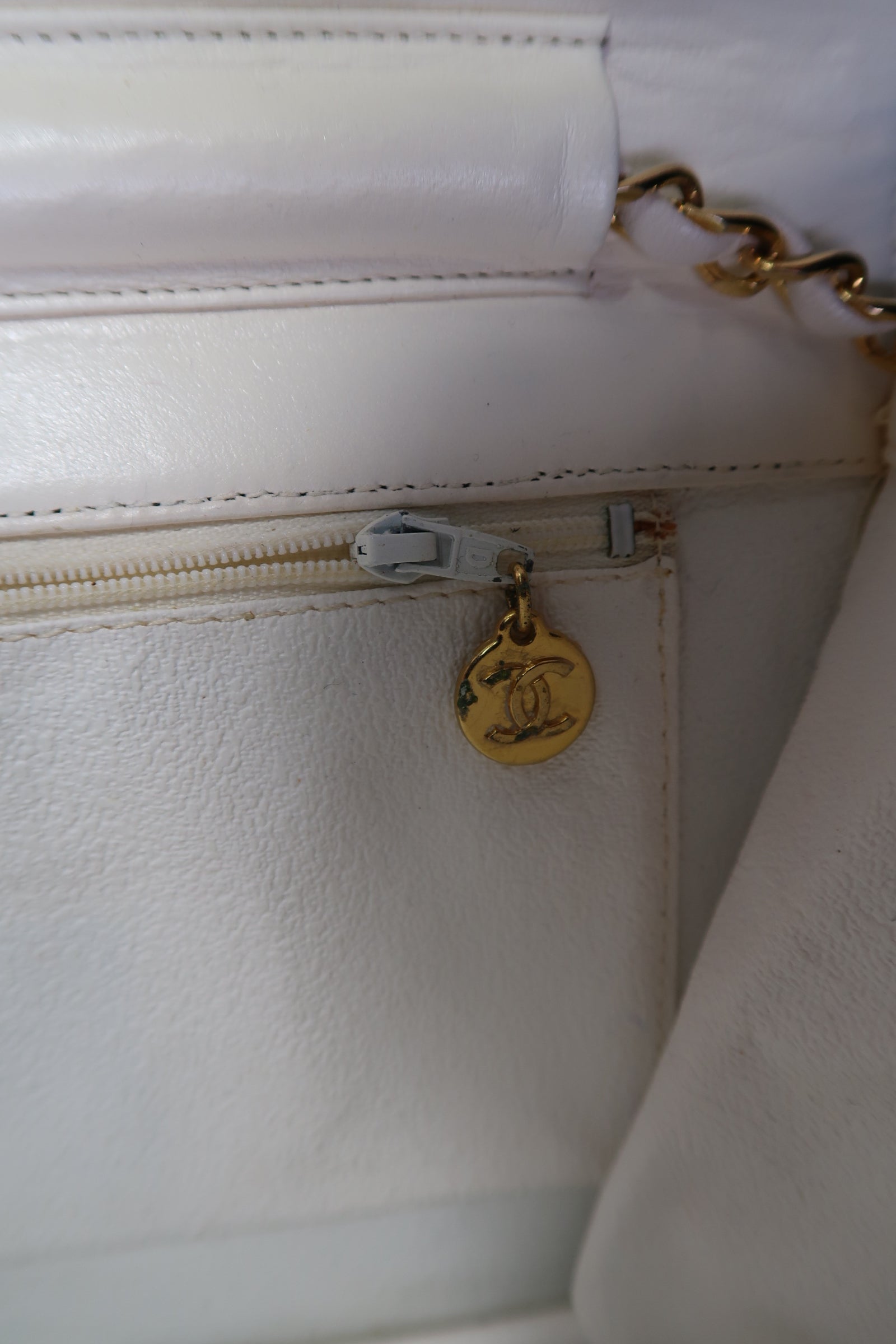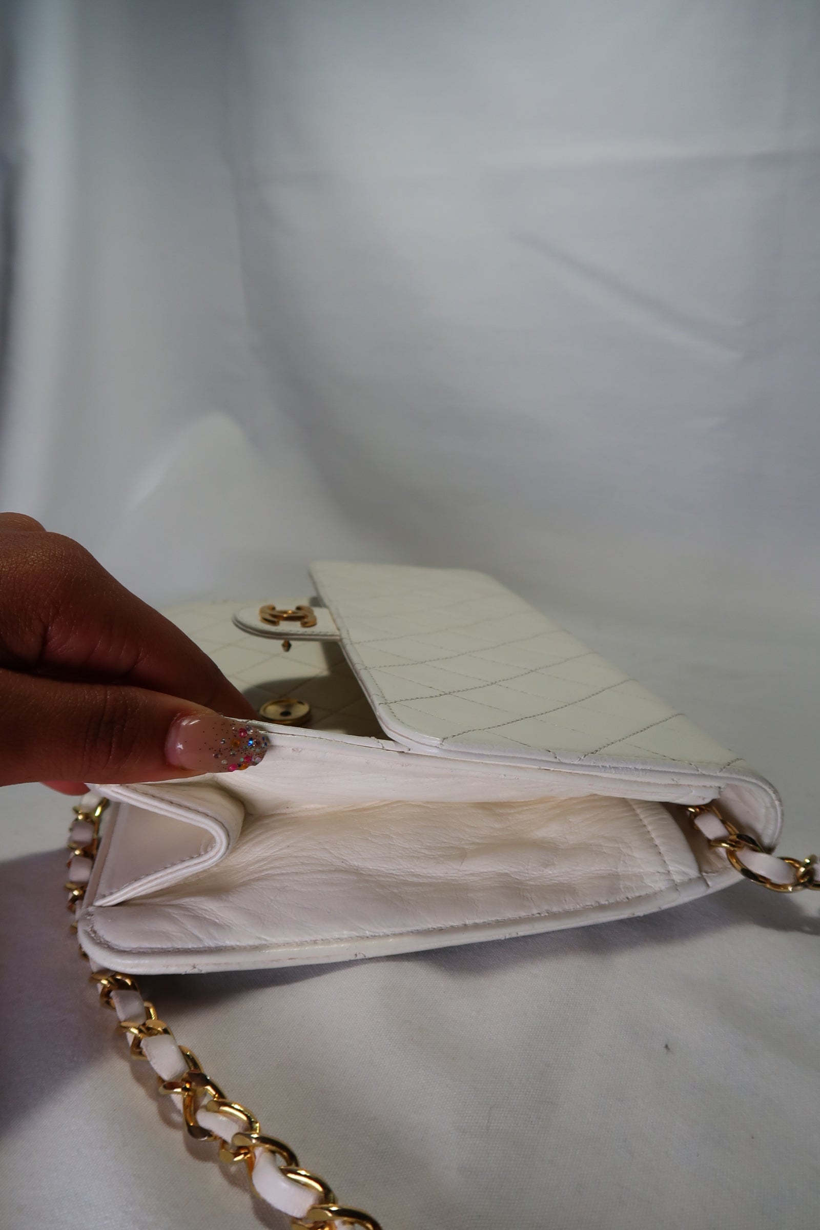 Chanel Quilted Matelasse CC Logo Lambskin Chain Shoulder Bag White / Cream Gold