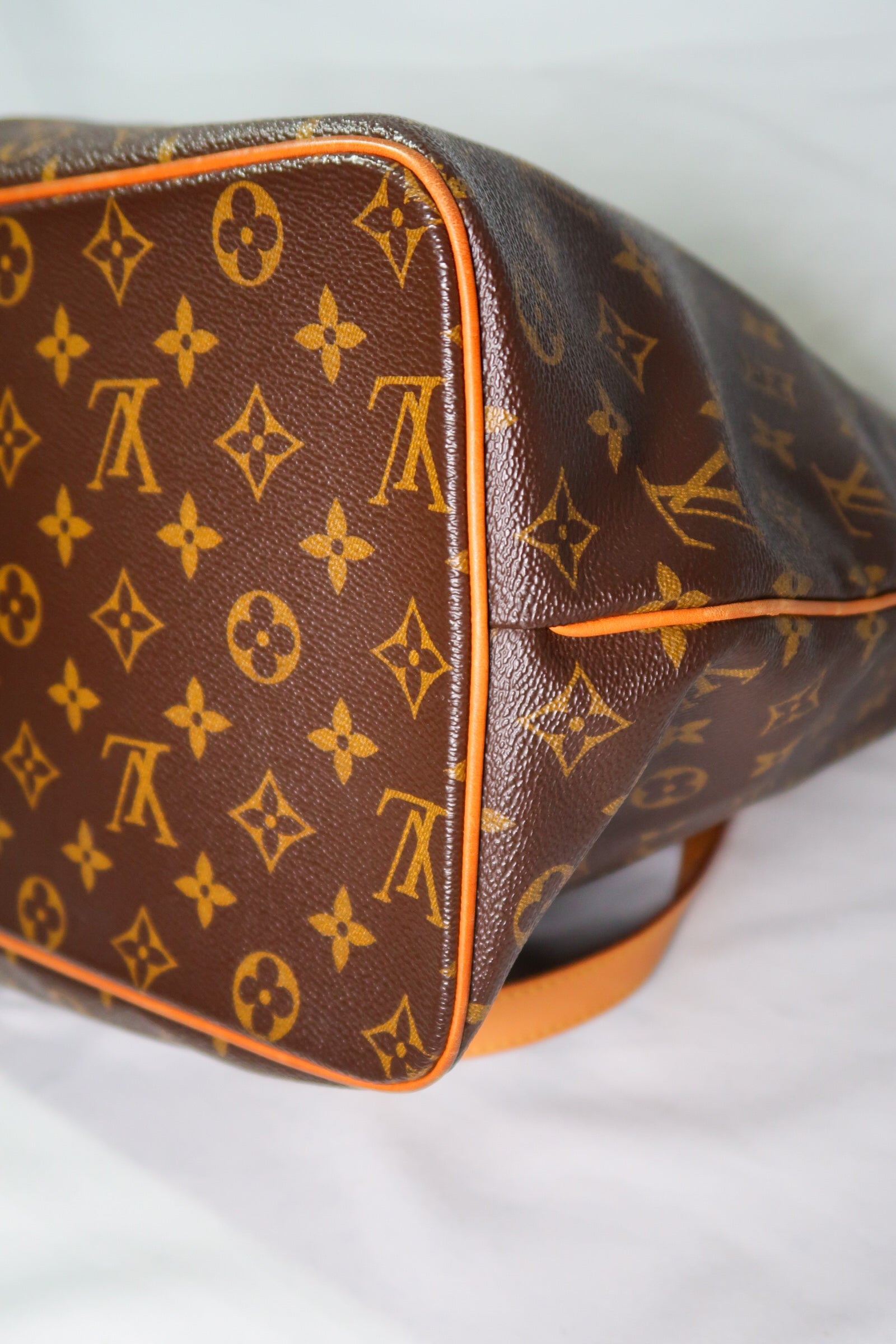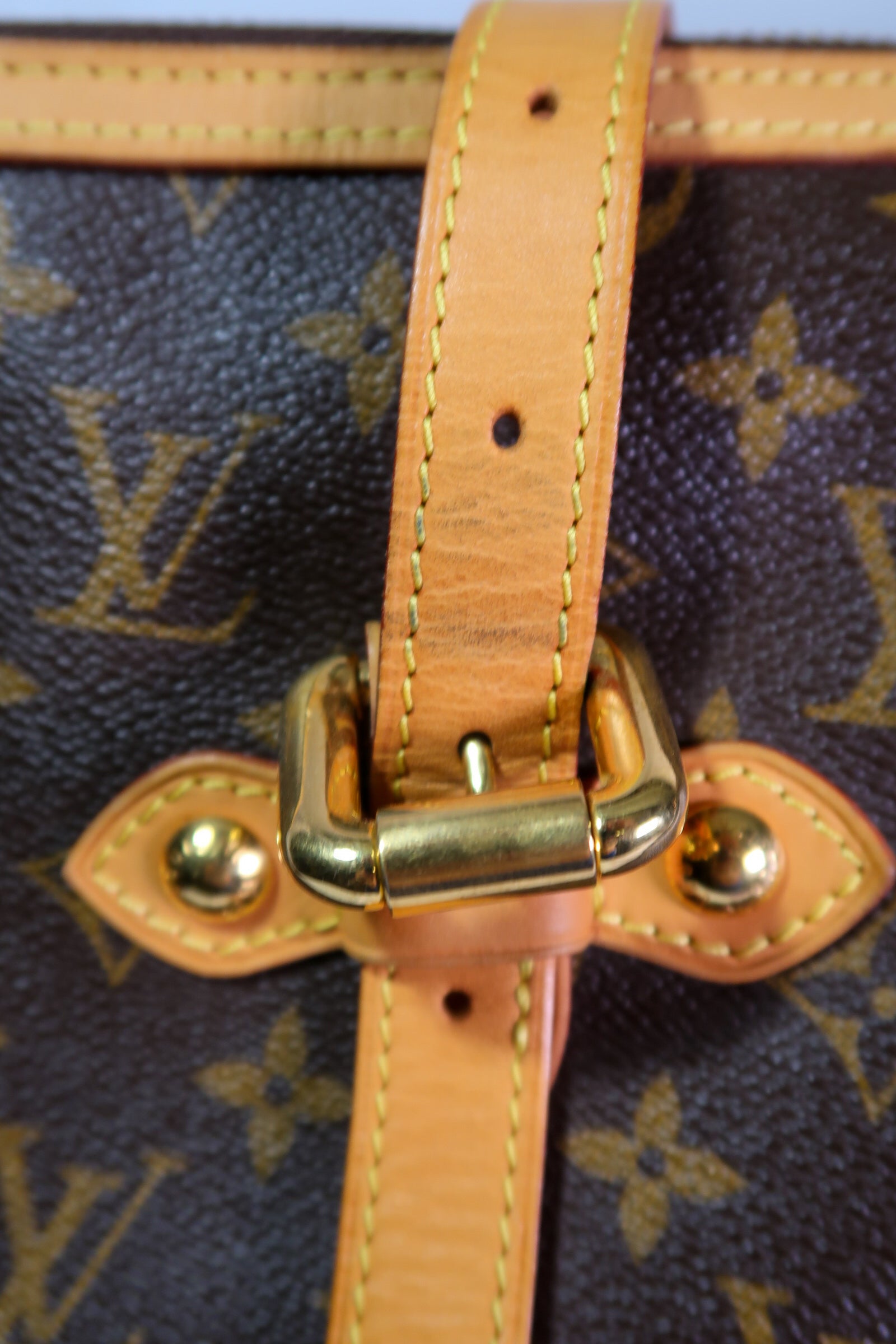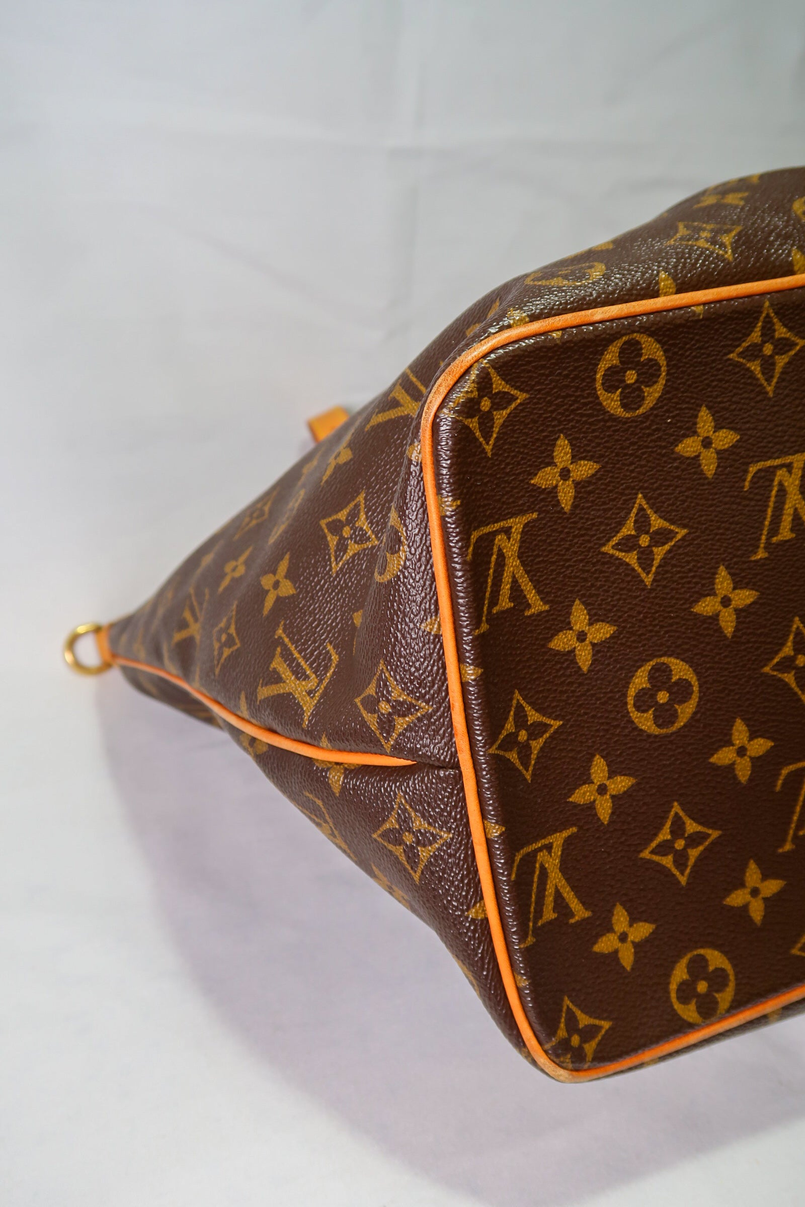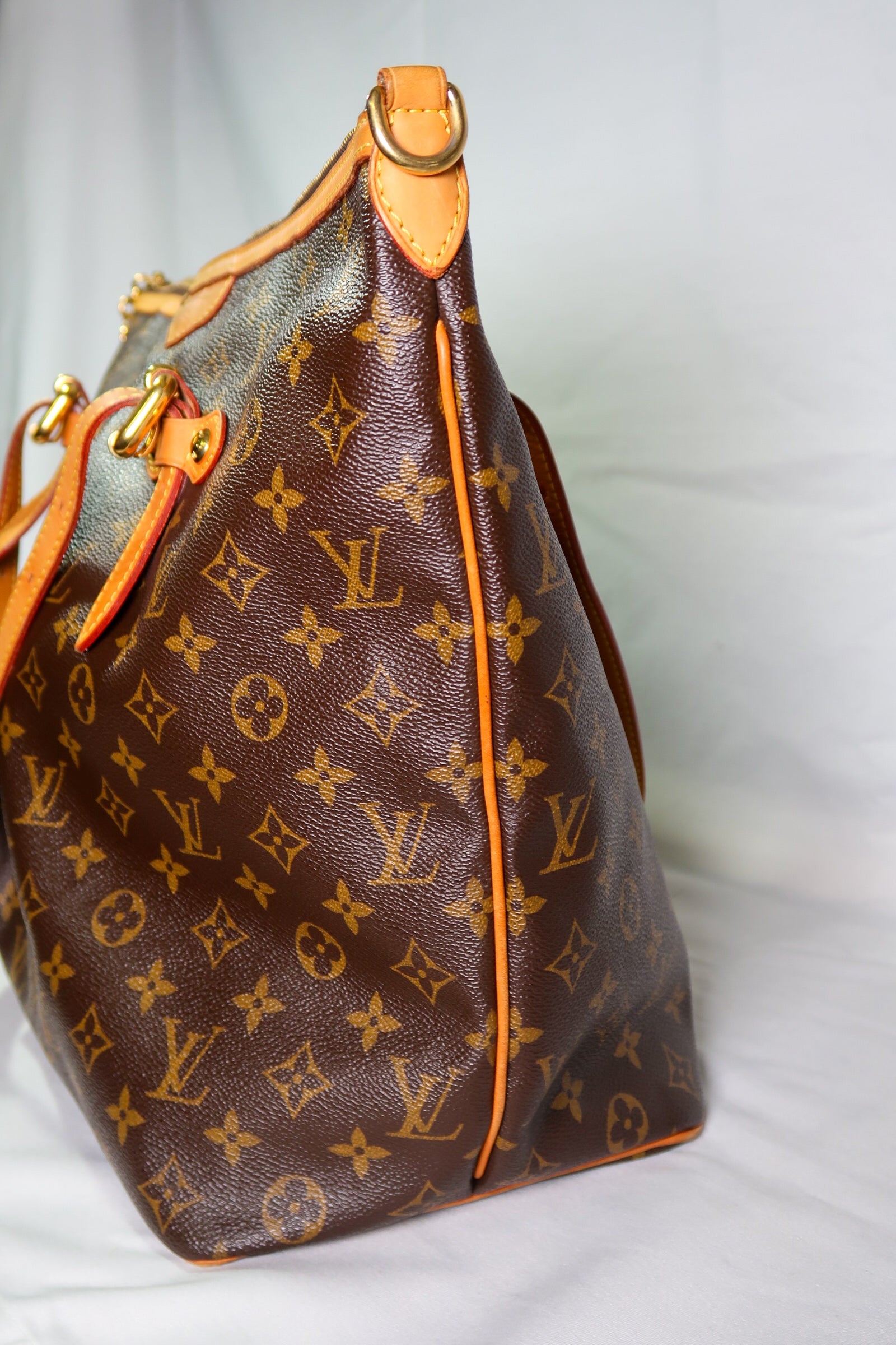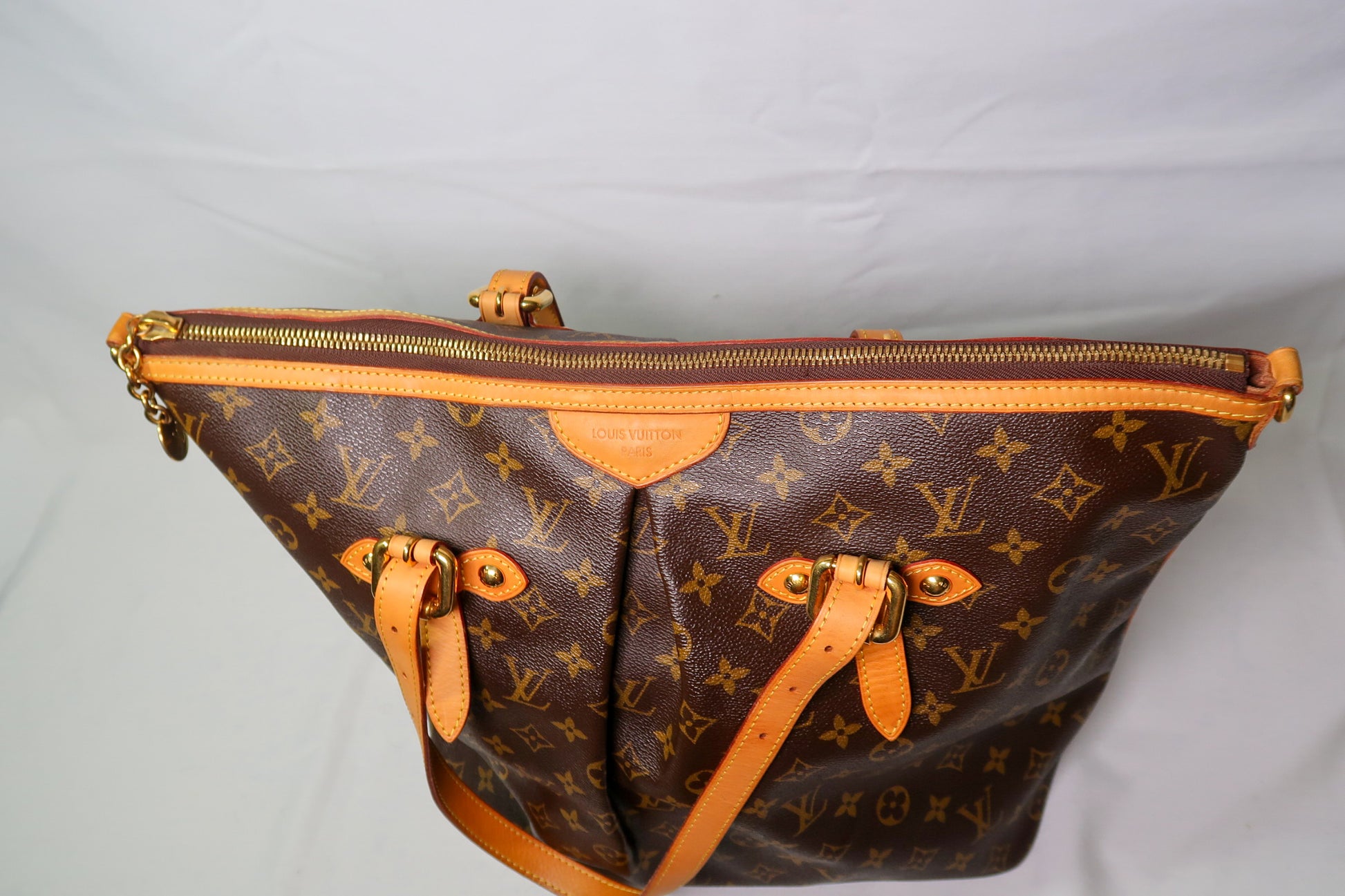 This is a secondhand authentic Louis Vuitton Palermo GM in Monogram Canvas. This chic tote features pleated details, vachetta leather trim, and gold-tone hardware with a zip-top closure. Its spacious interior with multiple compartments makes it the perfect day-to-day carryall or travel companion.
