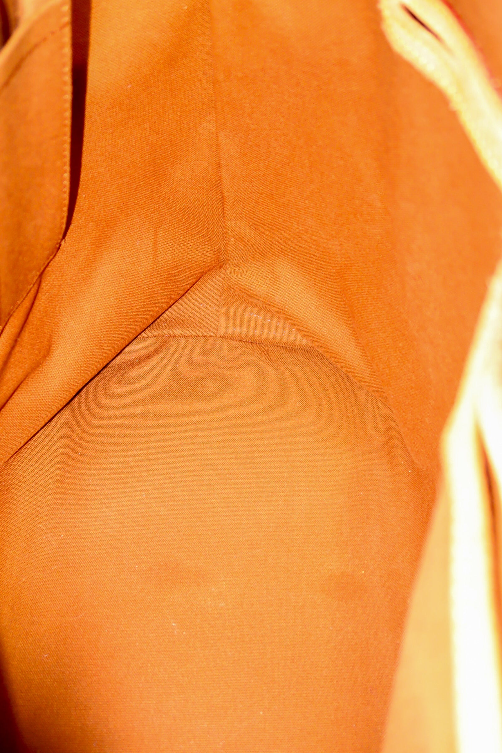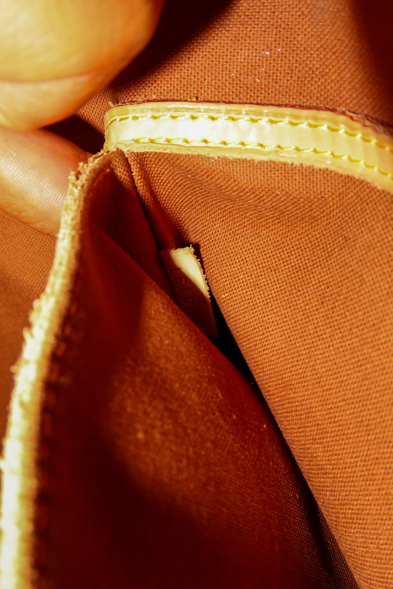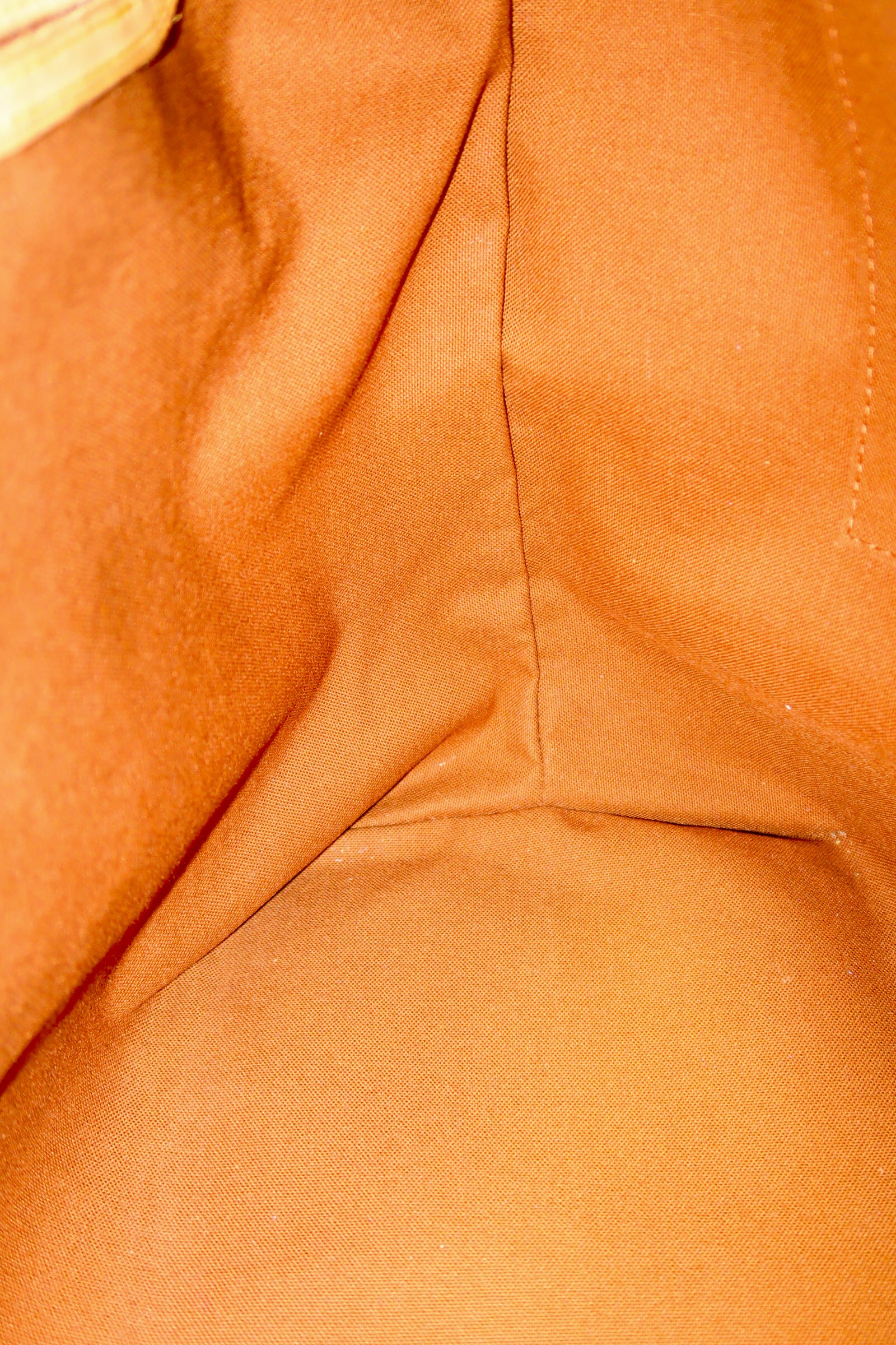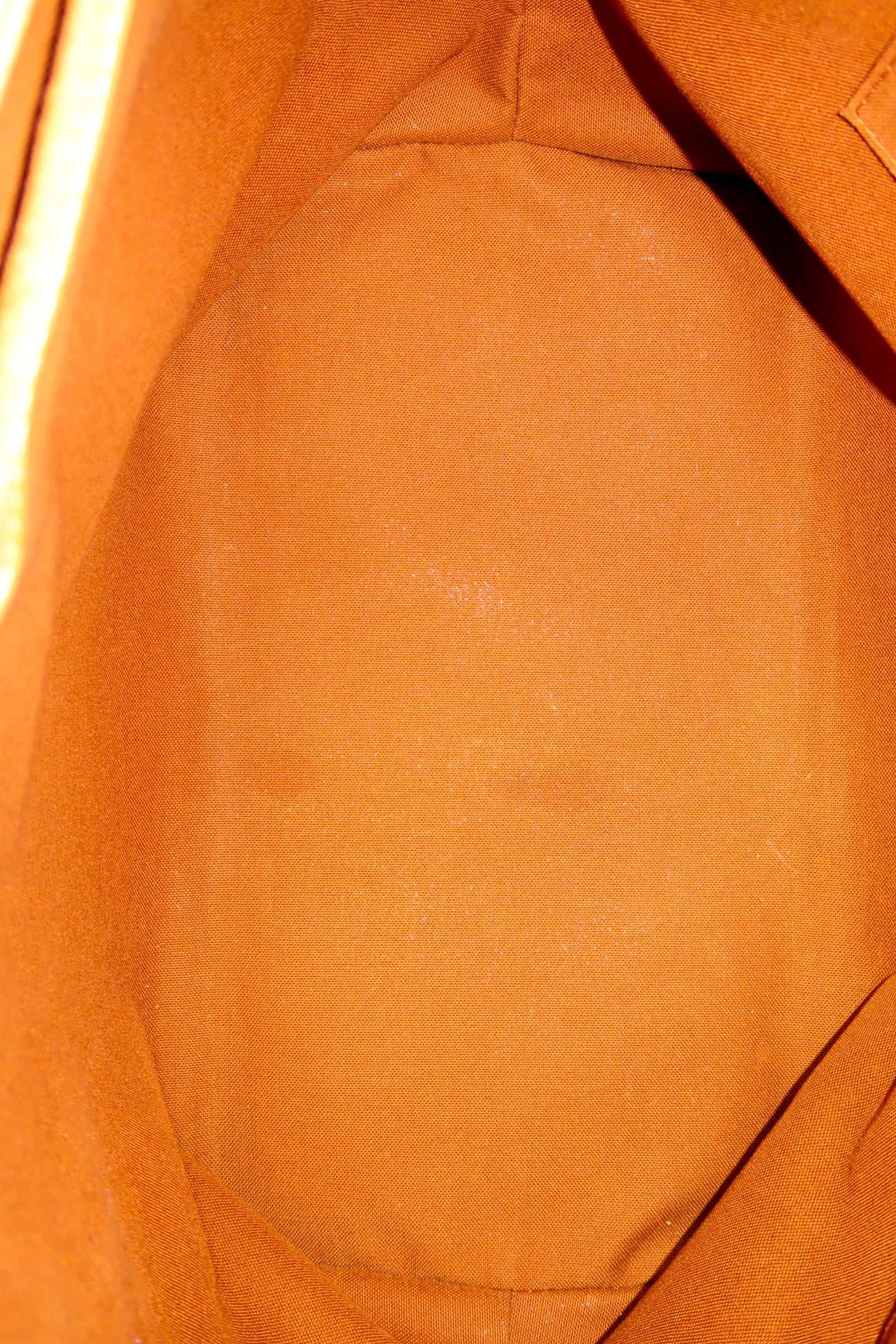 Interior: Clean brown canvas lining with minimal signs of wear, 2 stains visible stains in bottom of bag
