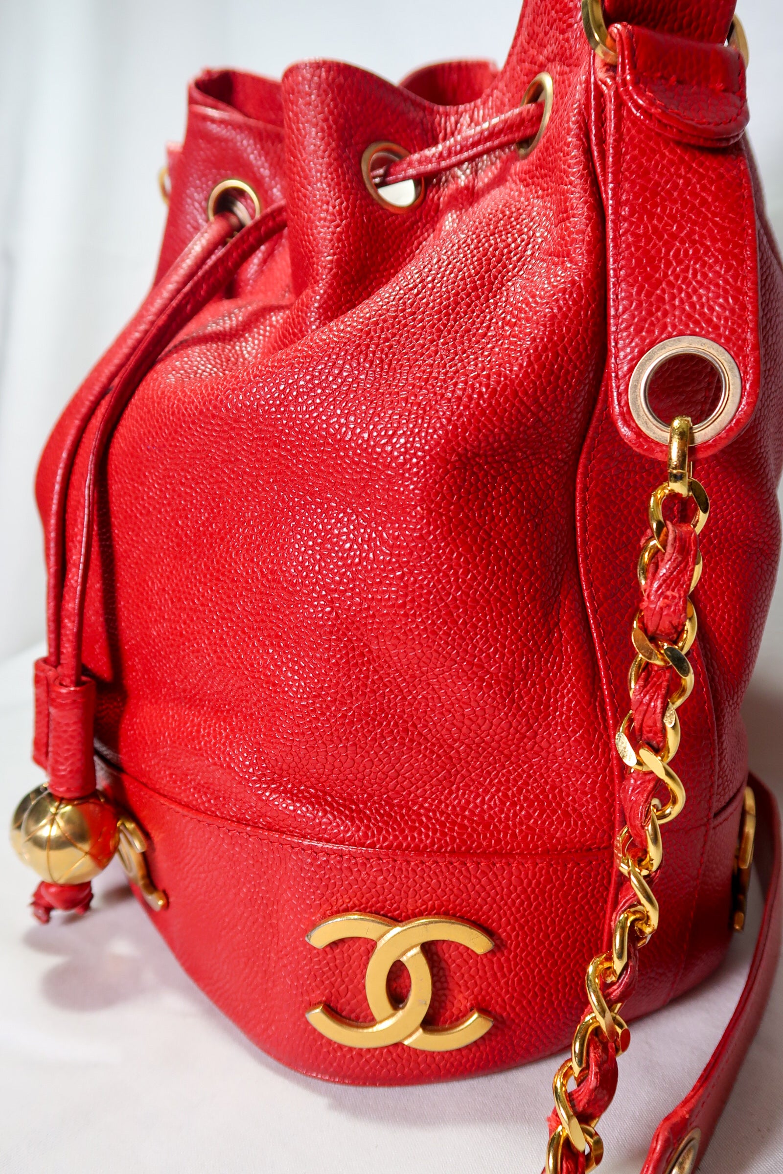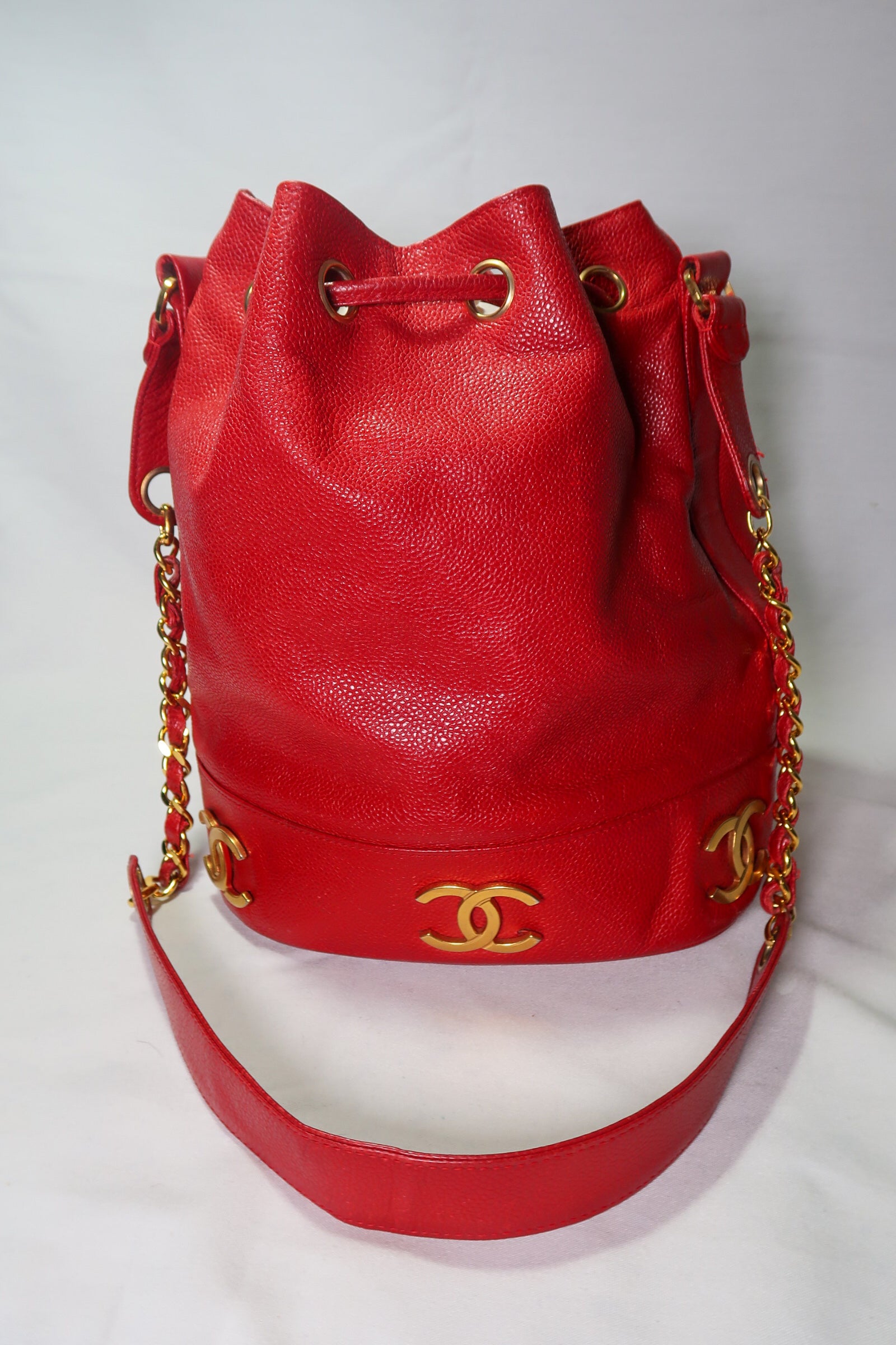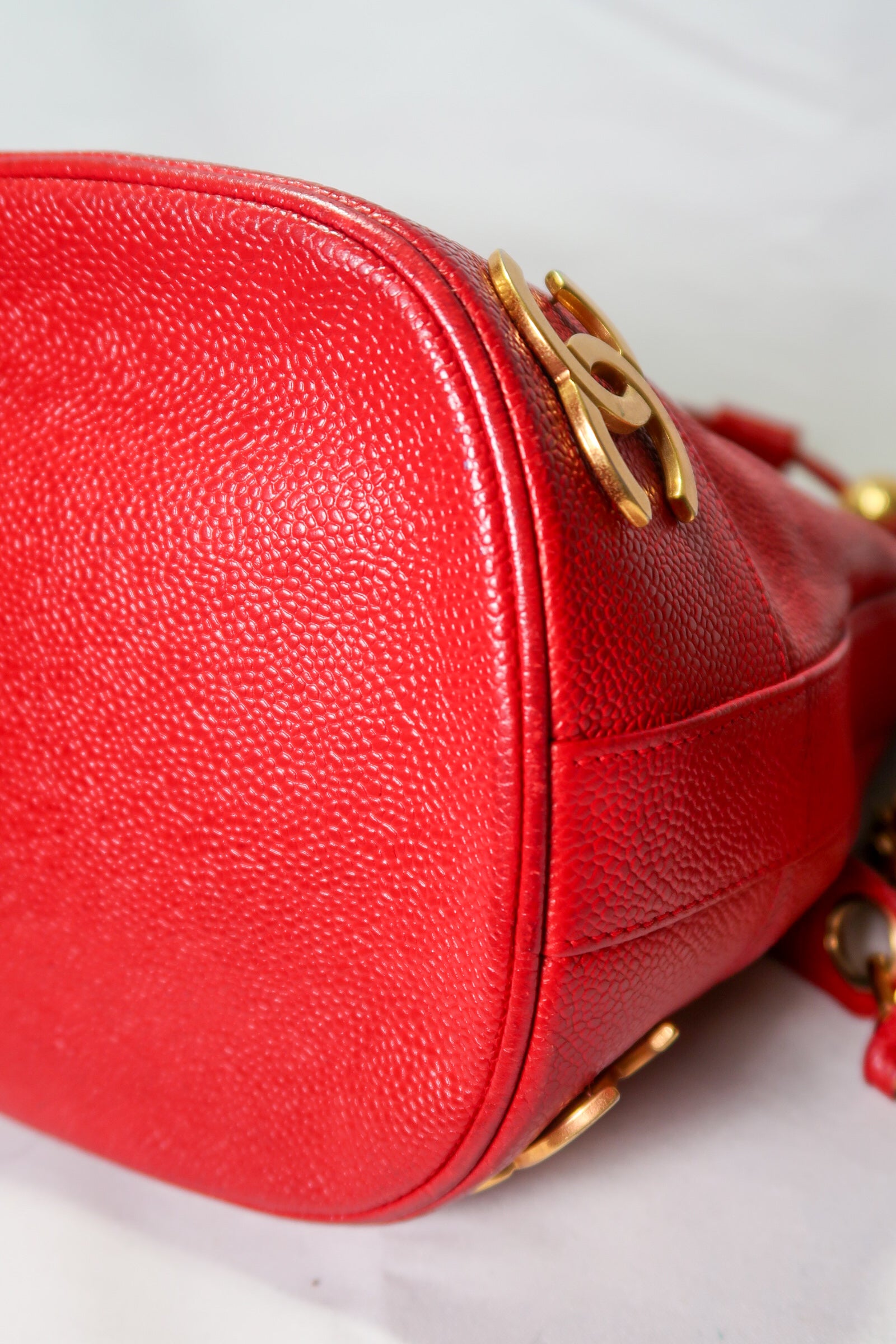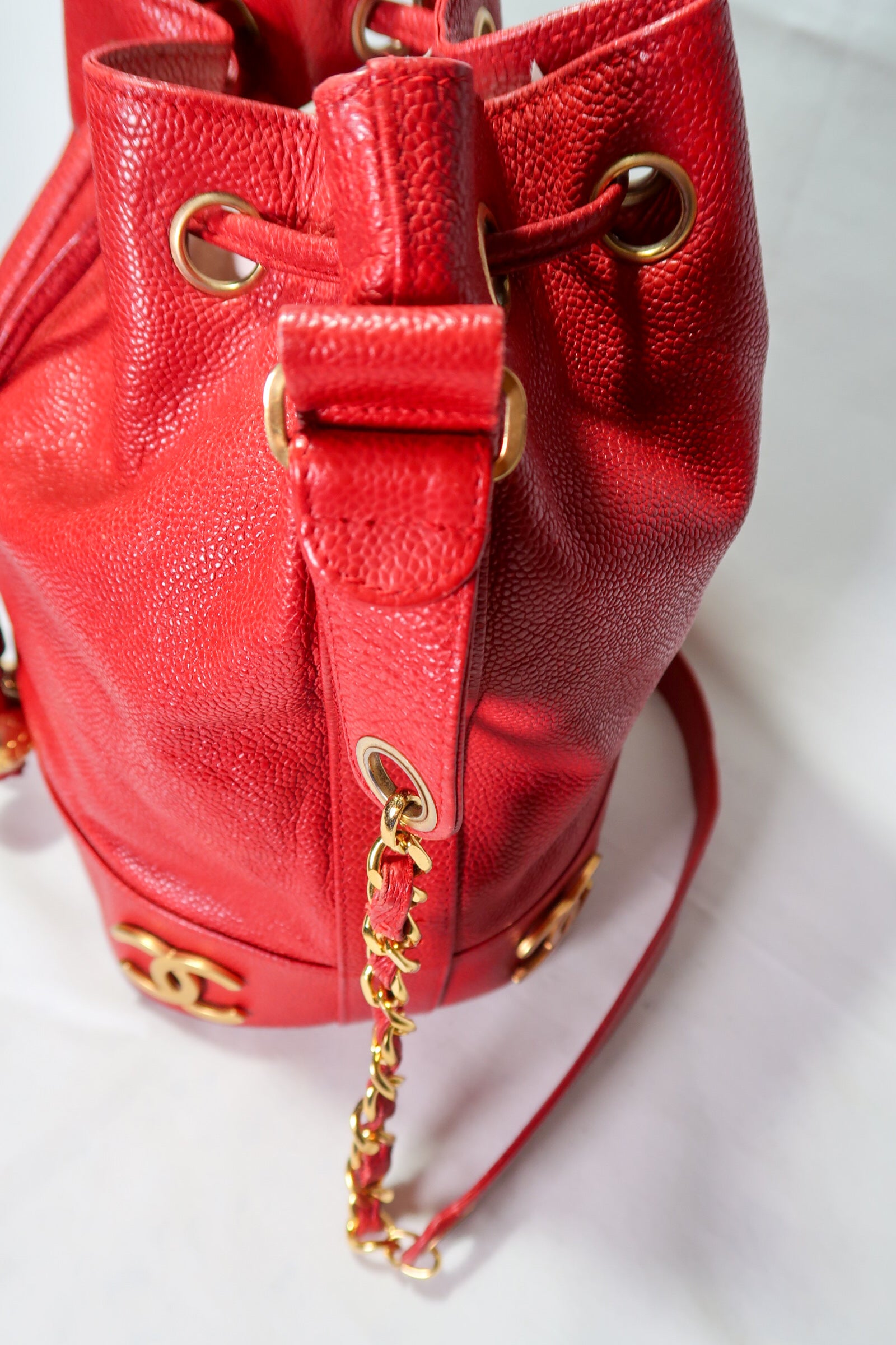 Chanel Red Caviar 3 'CC' Bucket Bag Medium