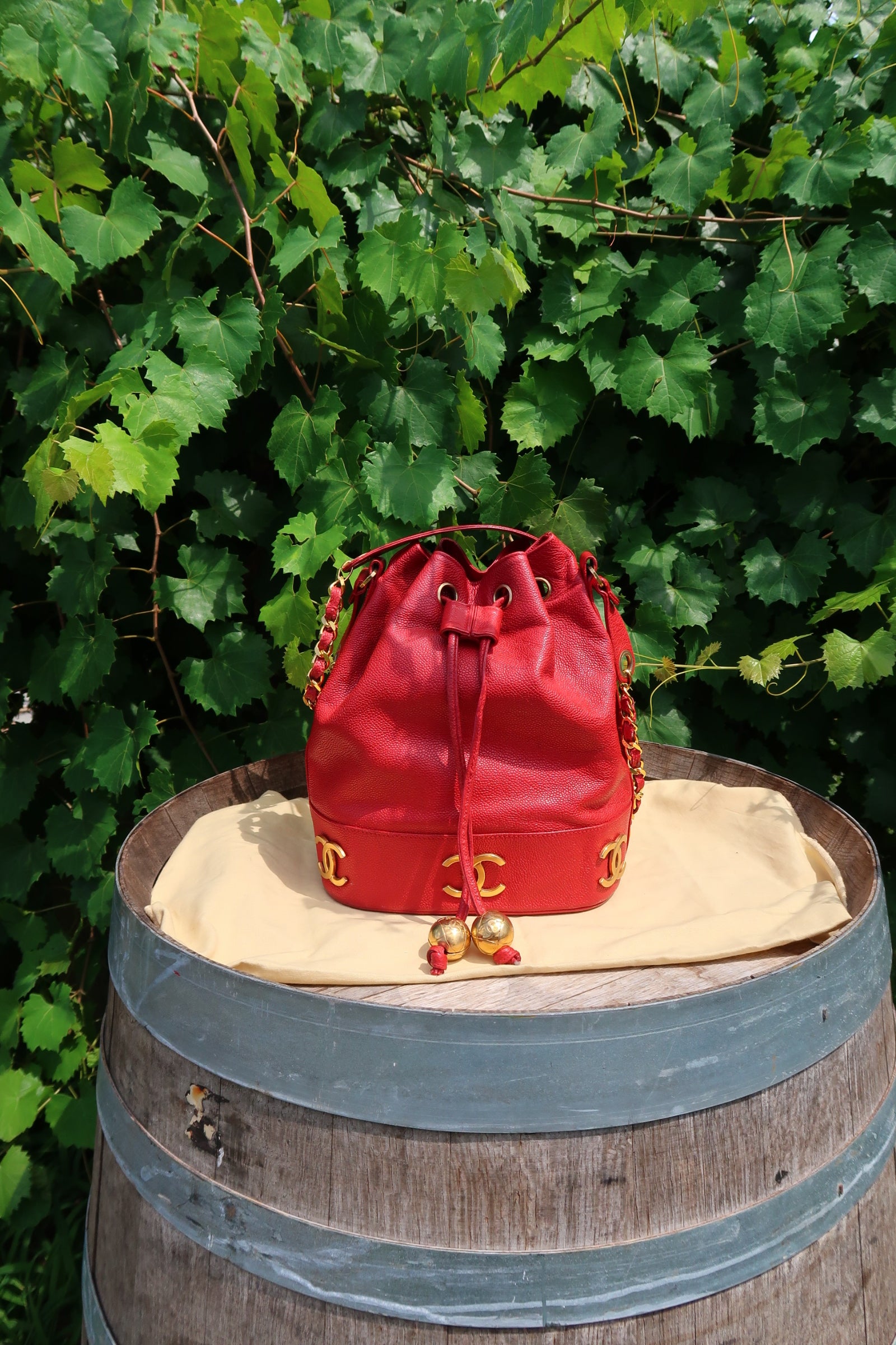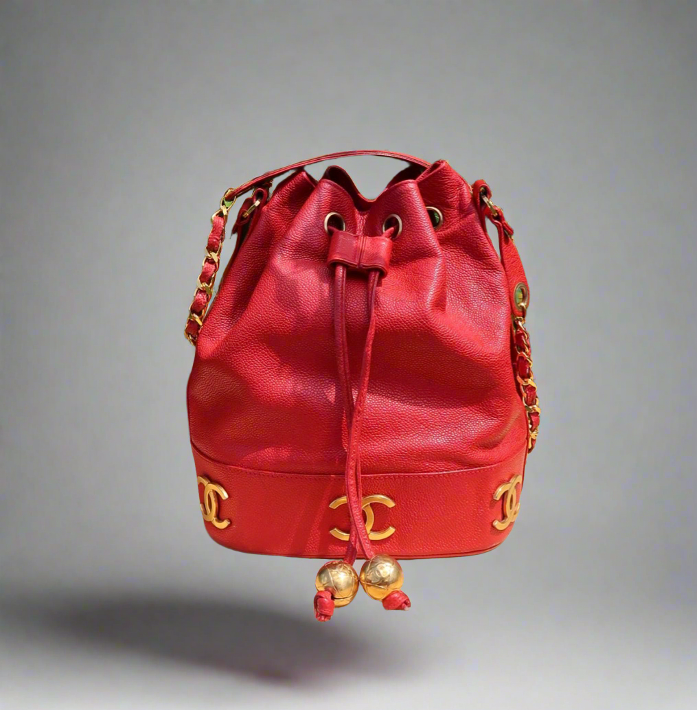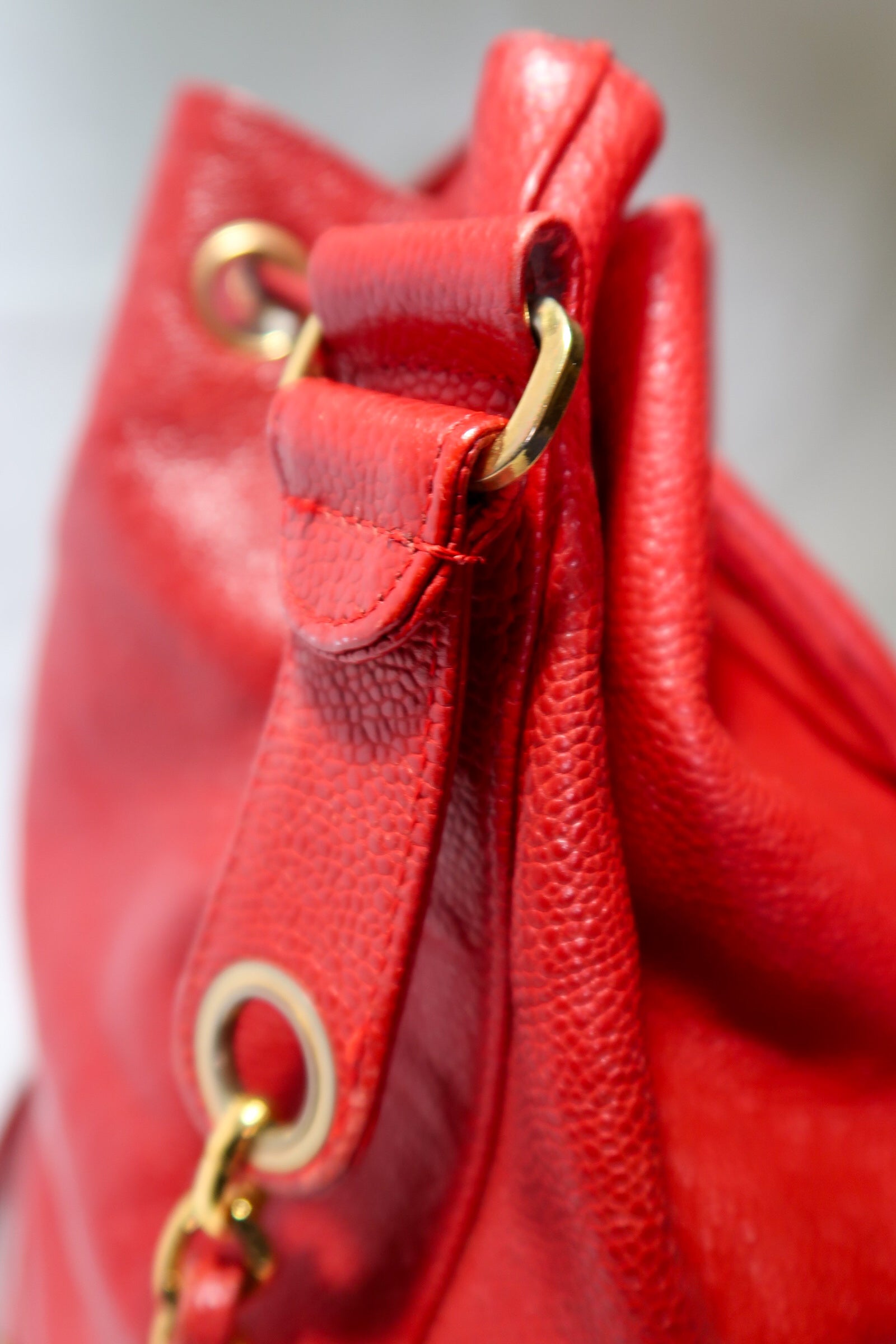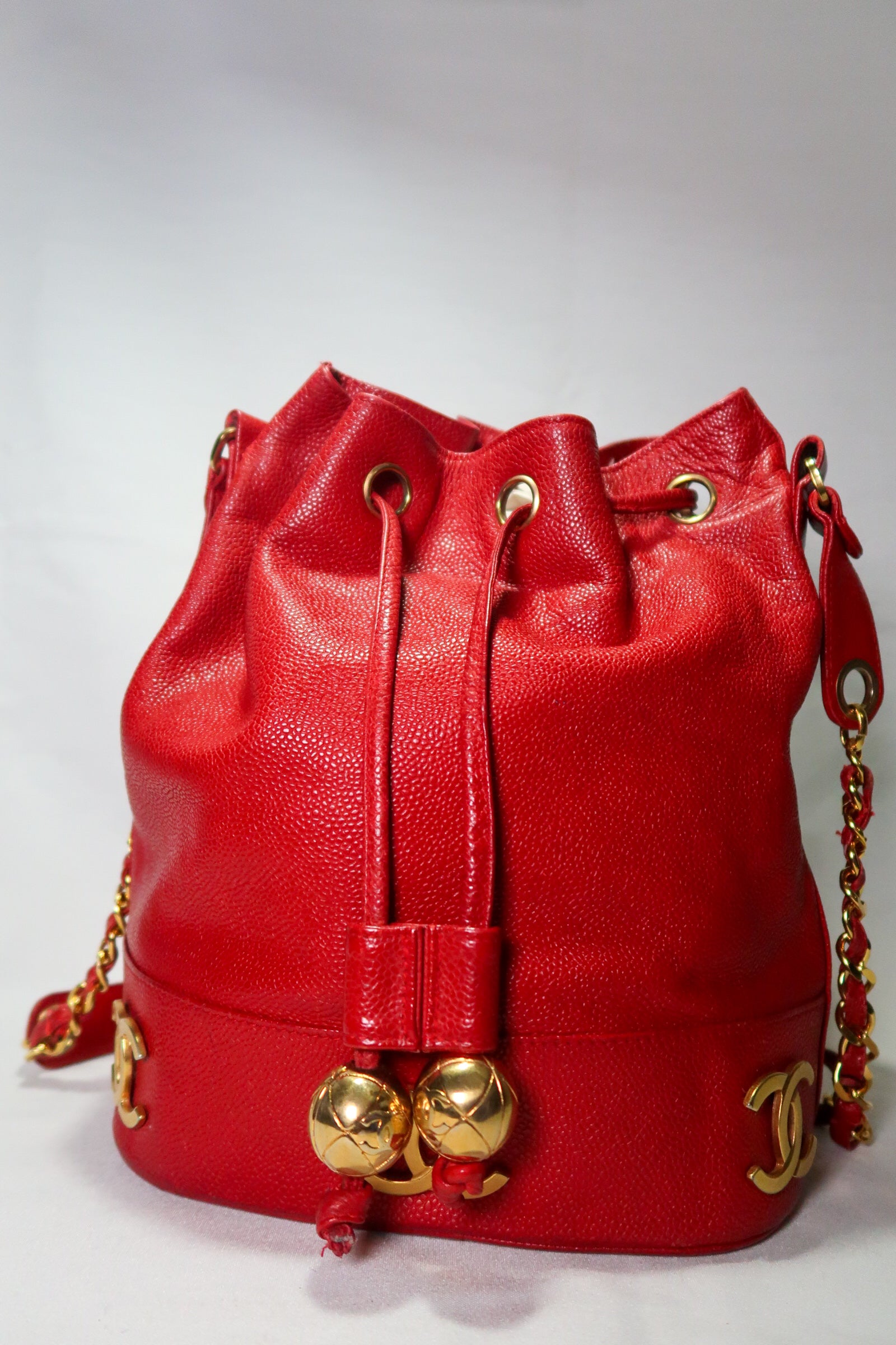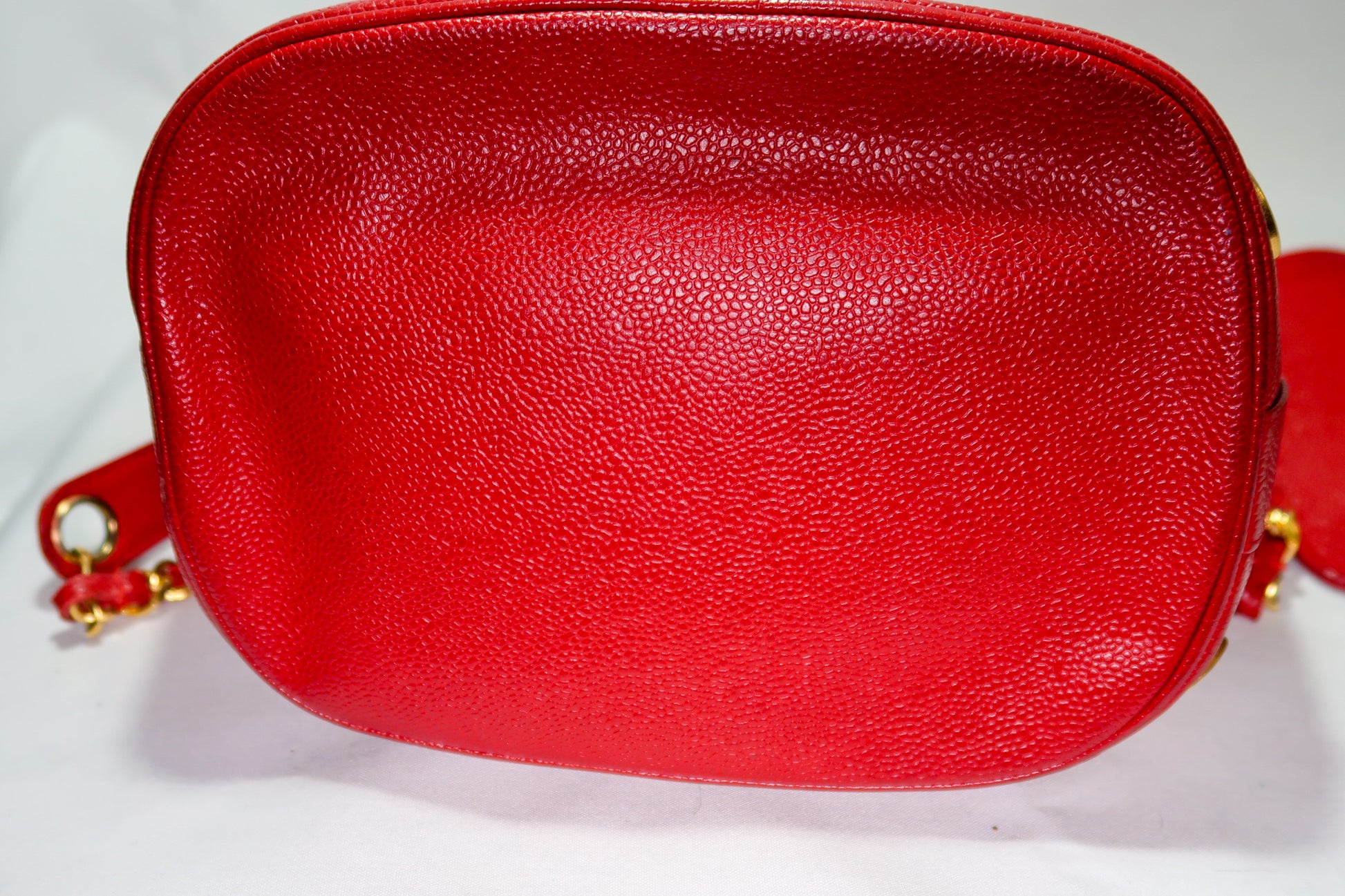 Chanel Red Caviar 3 'CC' Bucket Bag Medium