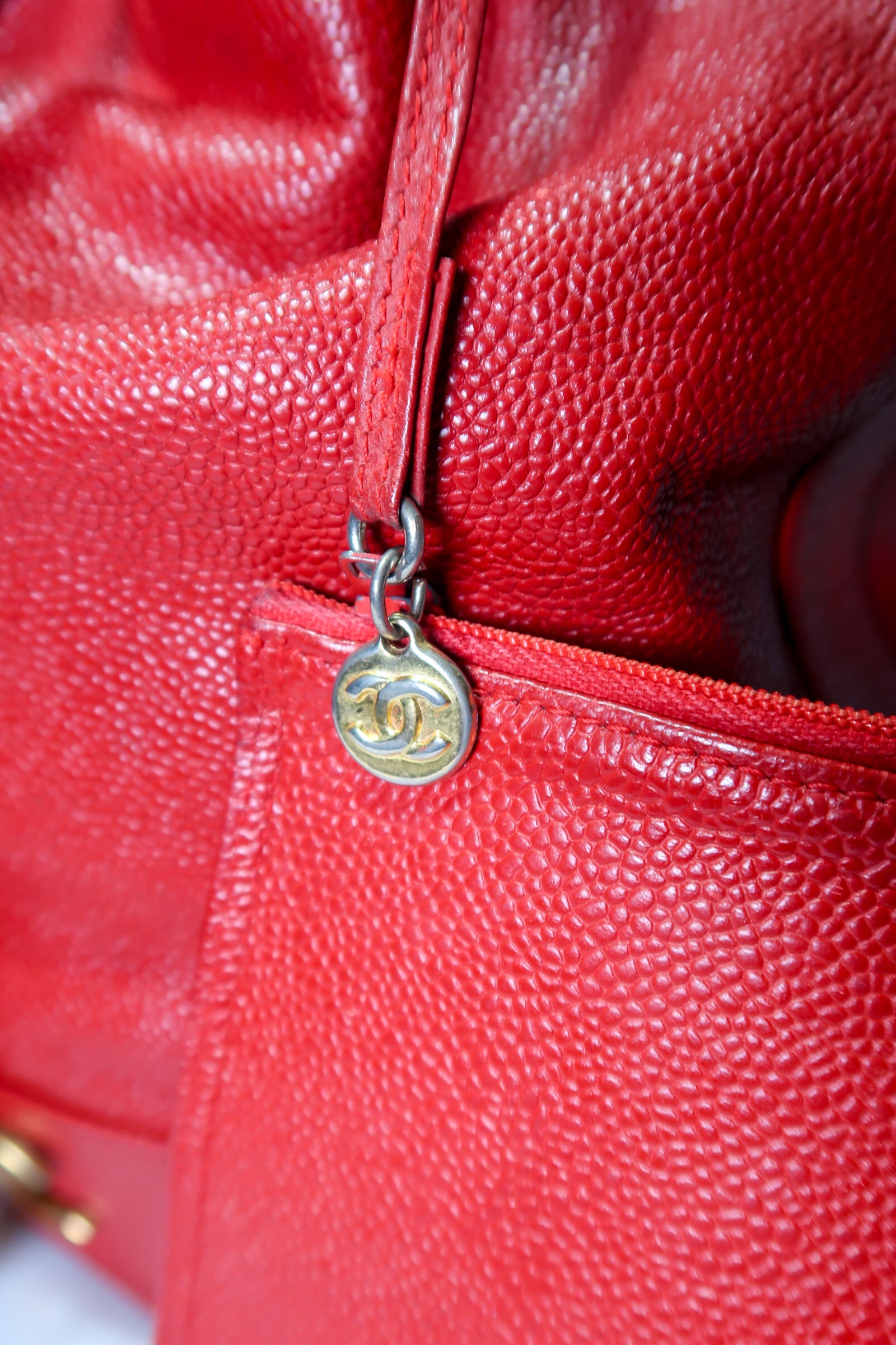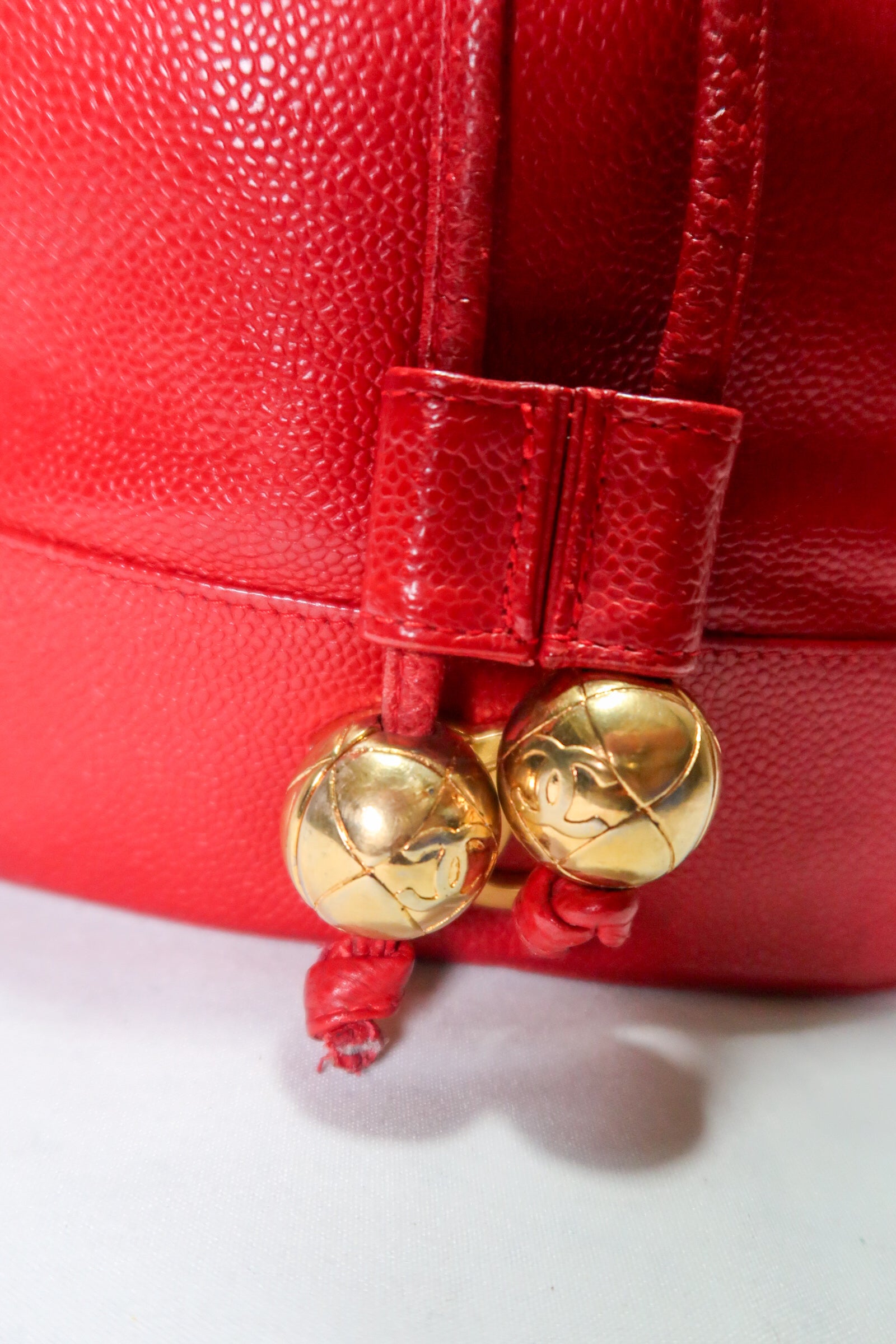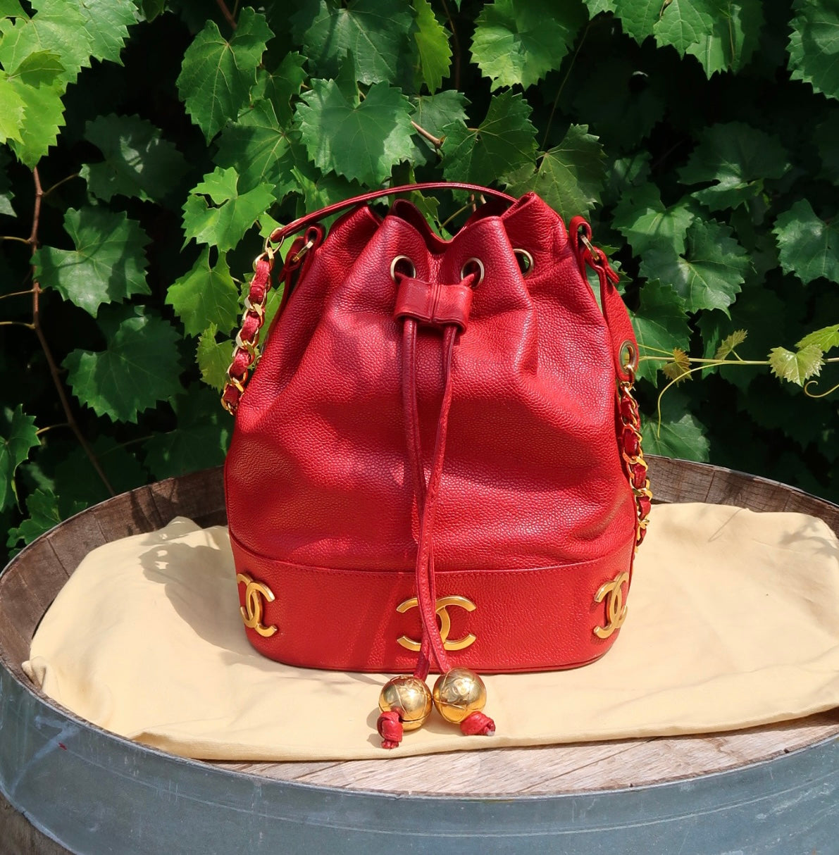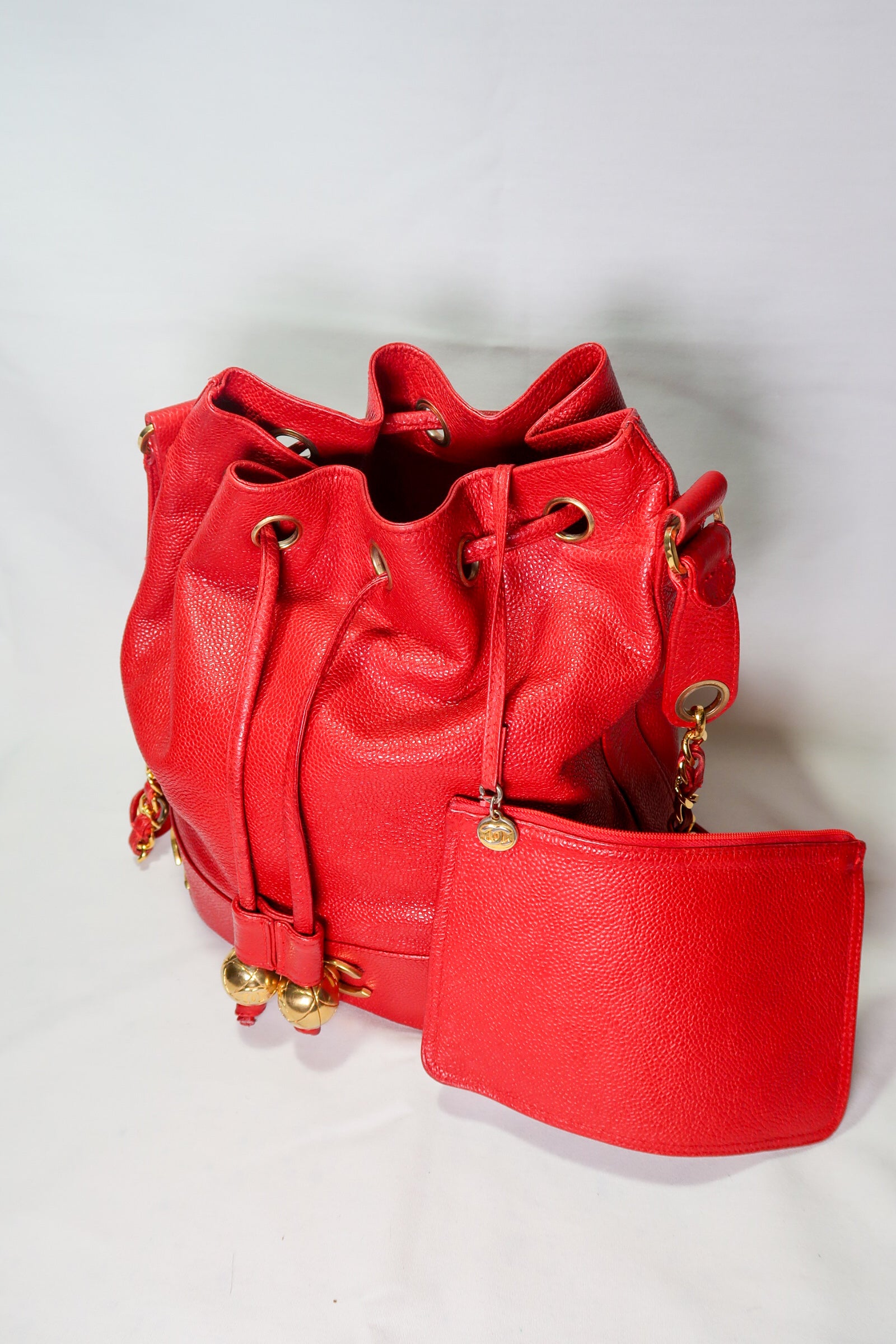Chanel Red Caviar 3 'CC' Bucket Bag Medium